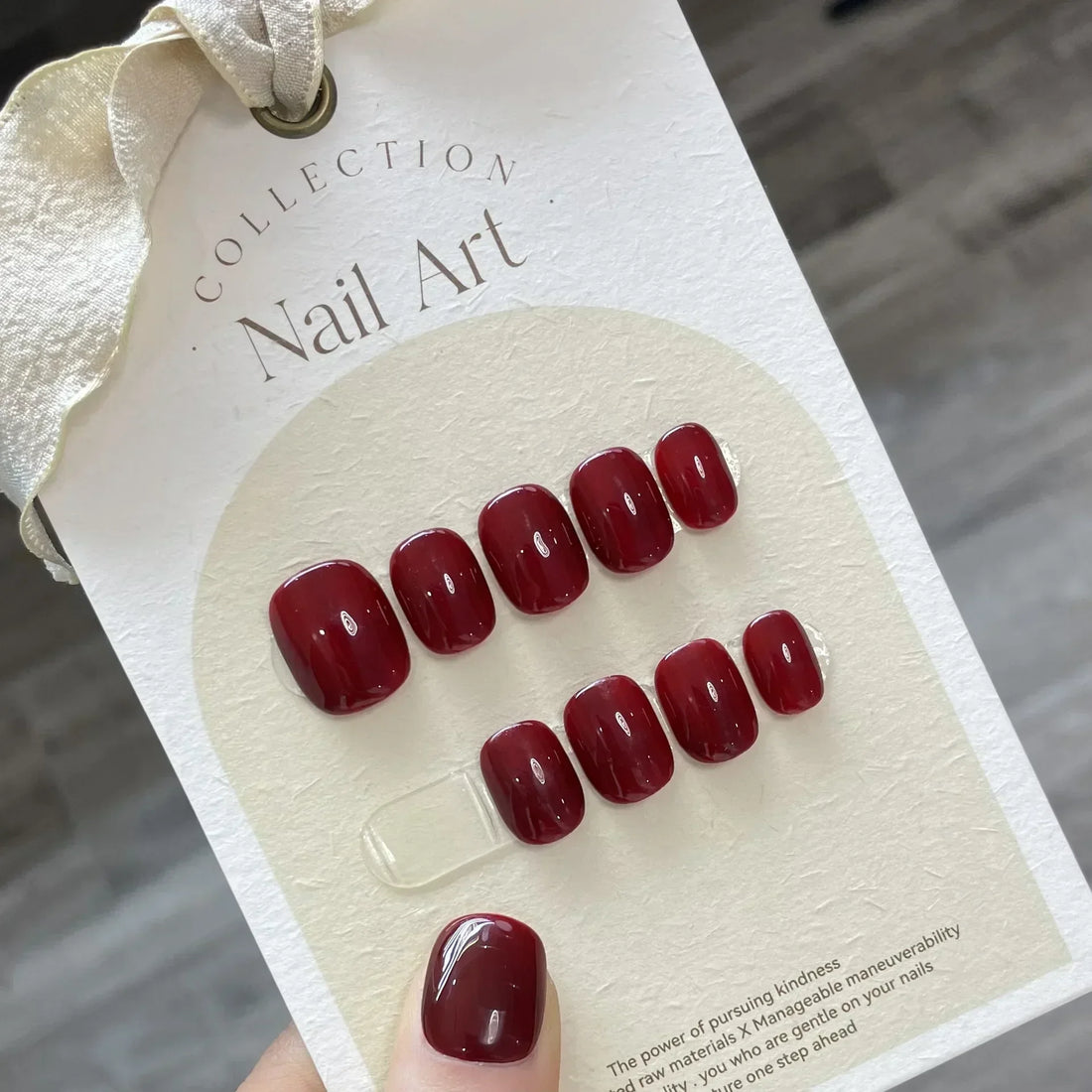 10Pcs Pure Color Handmade Short False Nail with Glue Press On Nails Full Cover French Round Head Manicure Wearable Nail Tips Art