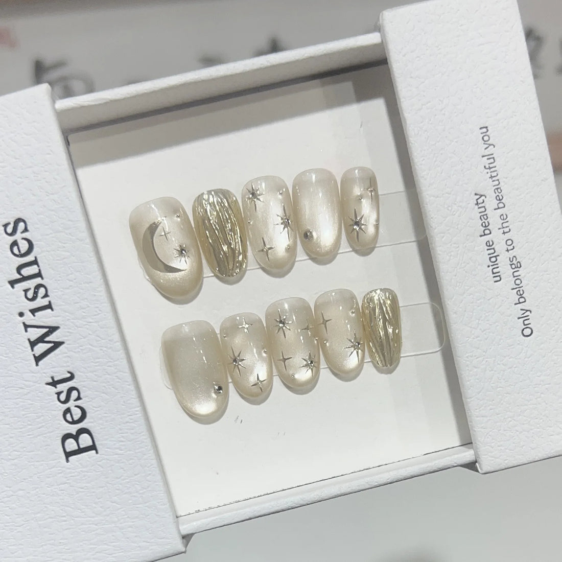 10Pcs Simple Fashion Handmade Press on Nails Glitter Cat Eye Fake Nails Wearable Nails Full Cover False Nail Uñas Postizas