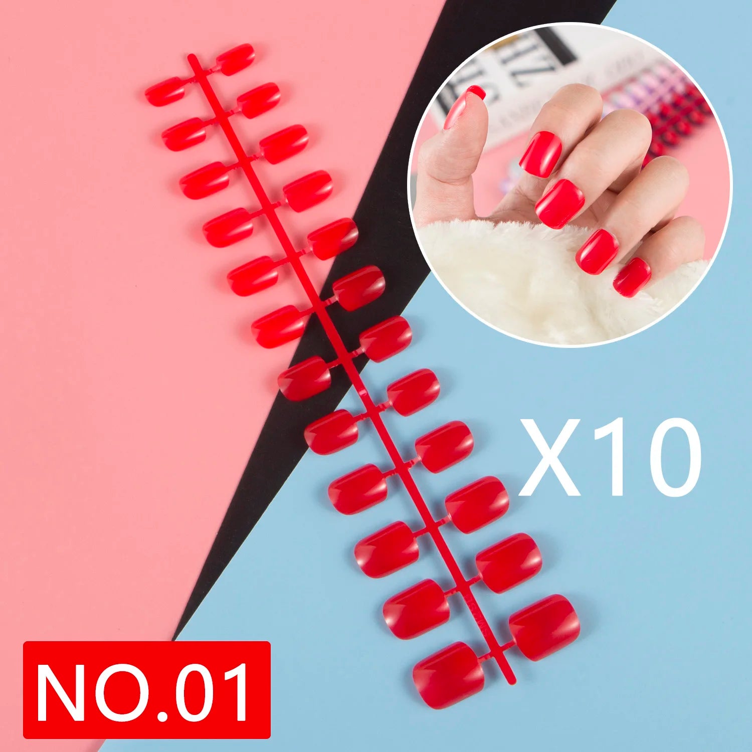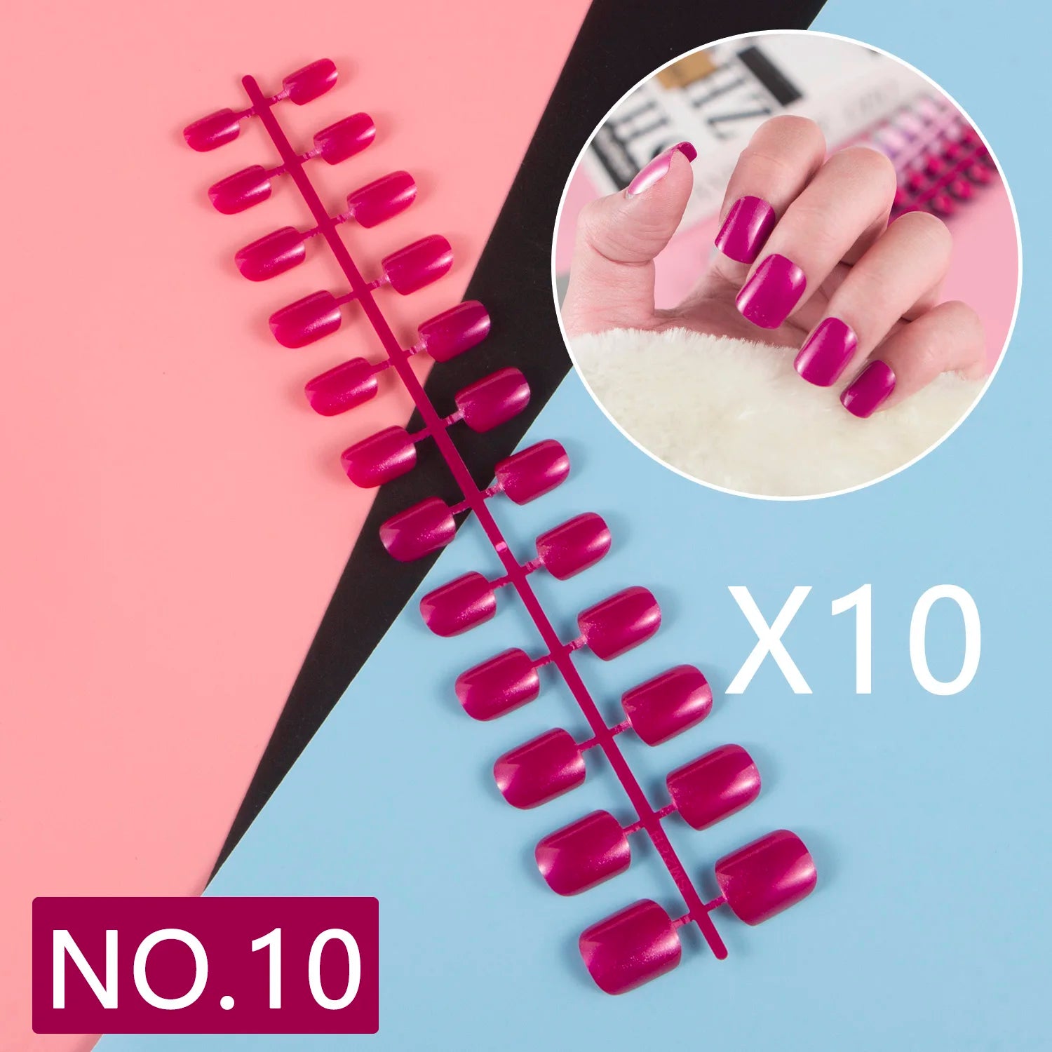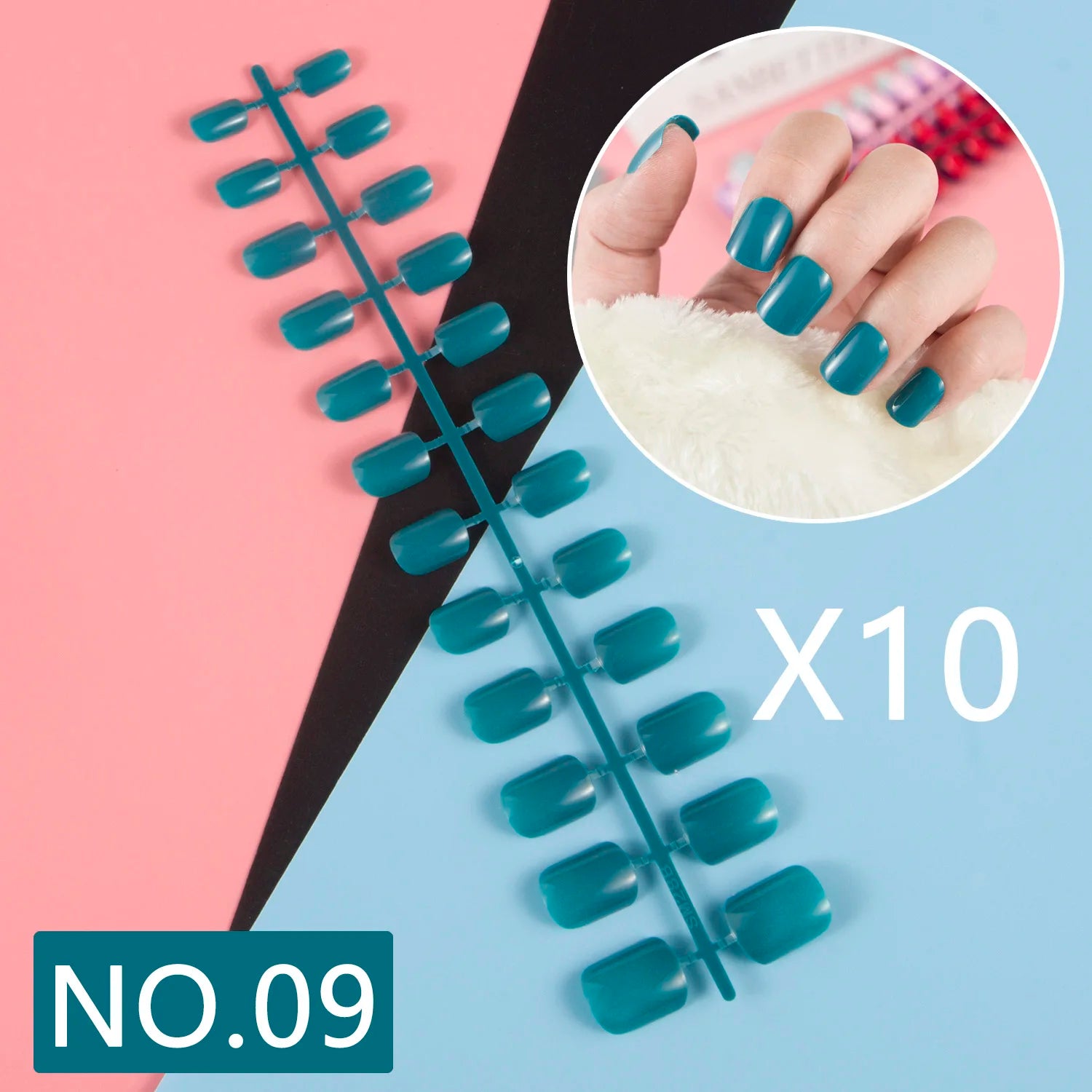 10 Sets Of Same Colors Square False Nail Tips 24 pcs Per Set 10 Sizes Press On Fake Nails DIY Manicure