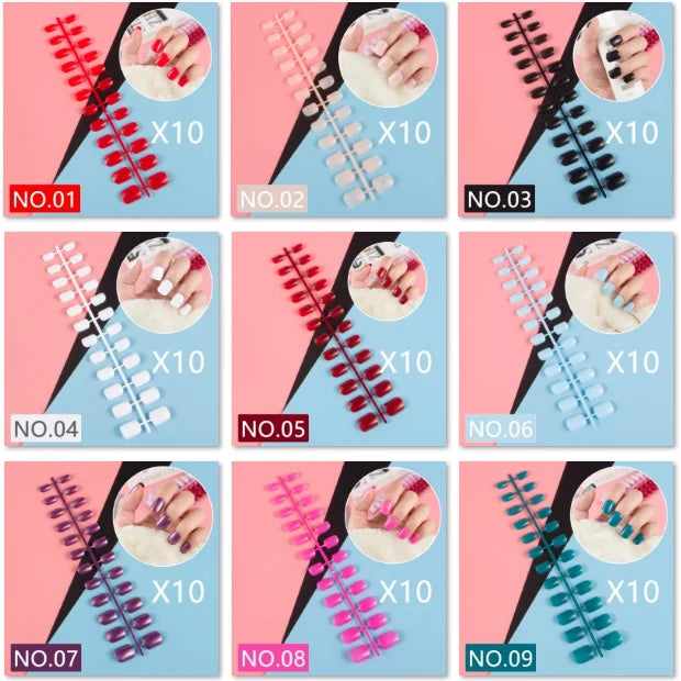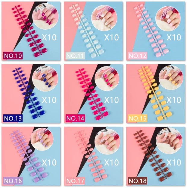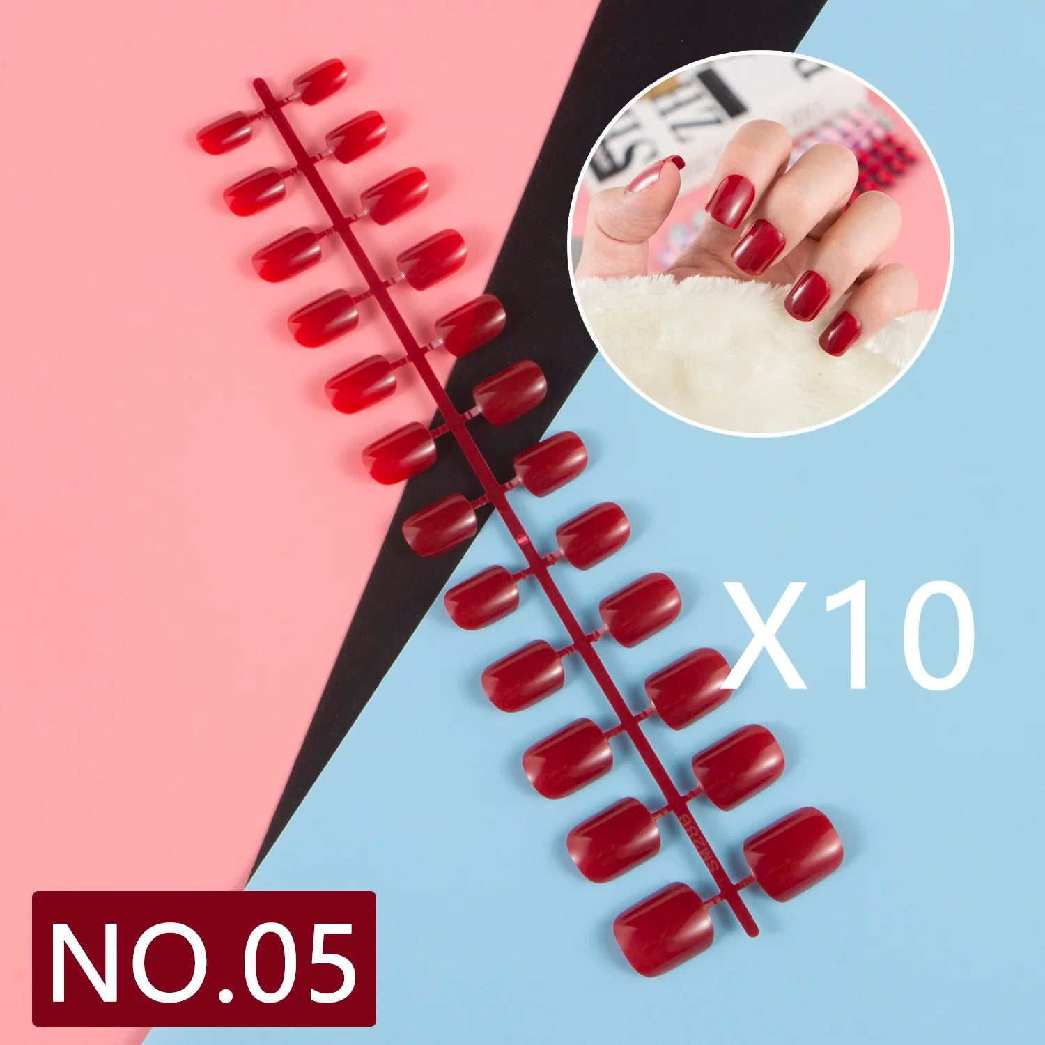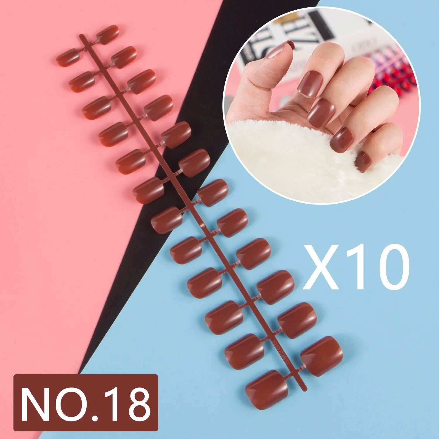 10 Sets Of Same Colors Square False Nail Tips 24 pcs Per Set 10 Sizes Press On Fake Nails DIY Manicure