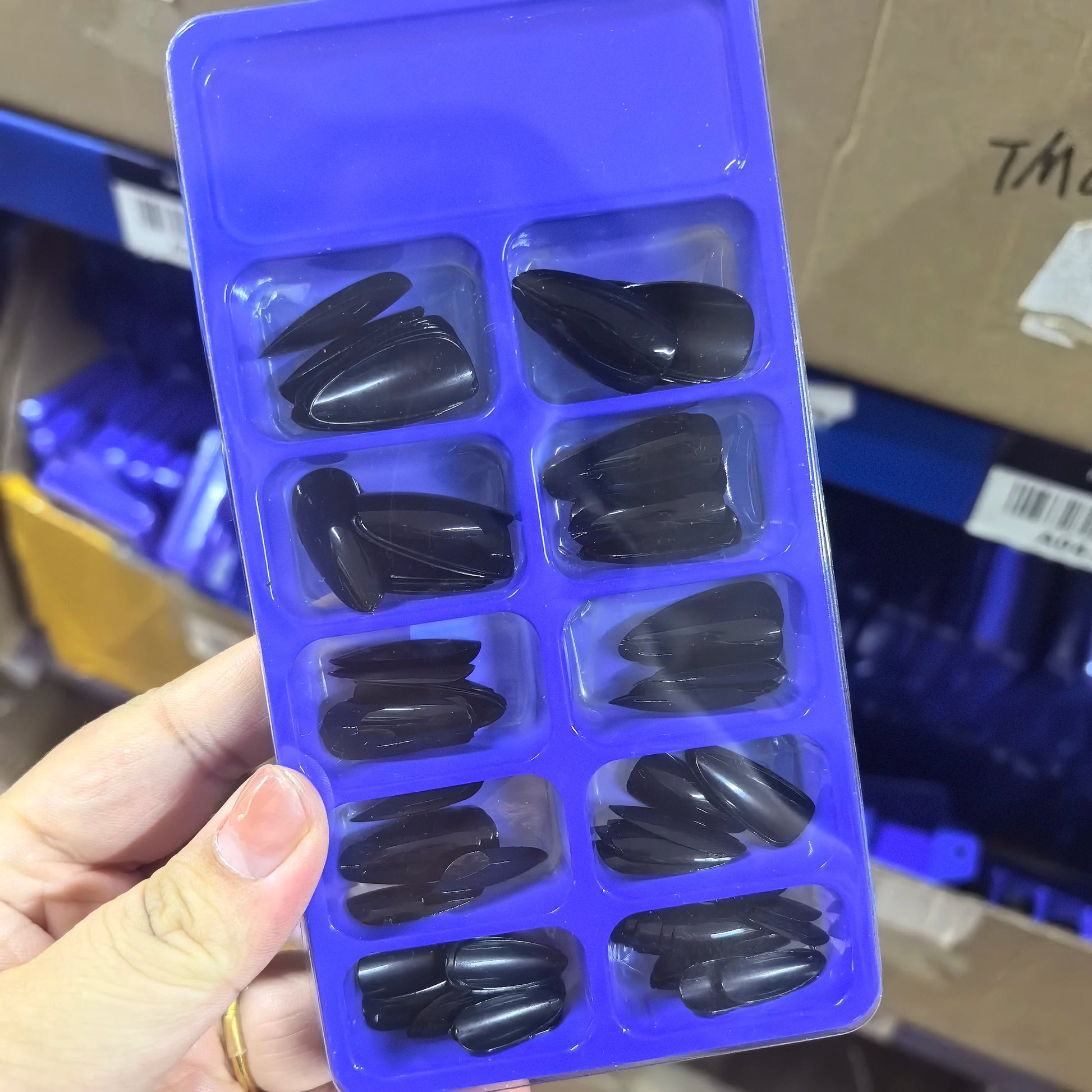 100pcs Black Almond Fake Nail Mid-length Solid Color Artificial Nail Removable Press On Nails Tip Almond Nail Art False Nail