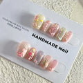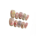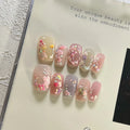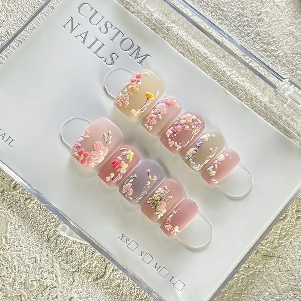 10Pcs 3D Embroidery Feel Colorful Flowers Caramel Iced Coffee Camellia Gilded Gold Wearing Armor Press on Nails Trend Nail Art