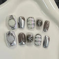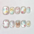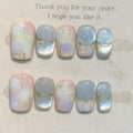 10Pcs Cute Short Round Handmade Fake Nail Glitter Colorful 3D Sweet Cool Art Finished Nail for Girl Wearable Full Cover Press On