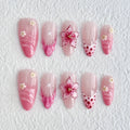 10pcs French Almond Press on Nails Flower False Nails Wearable Stick-on Nails Fake Nail Uñas Postizas Mujer Накладные Ногти 네일팁