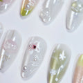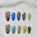 10pcs Handmade Press on Nails Cartoon Shark Pattern Design Fake Nails Wearable Detachable Ins Simple Almond Shaped False Nails