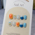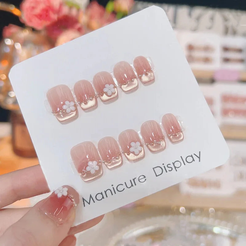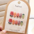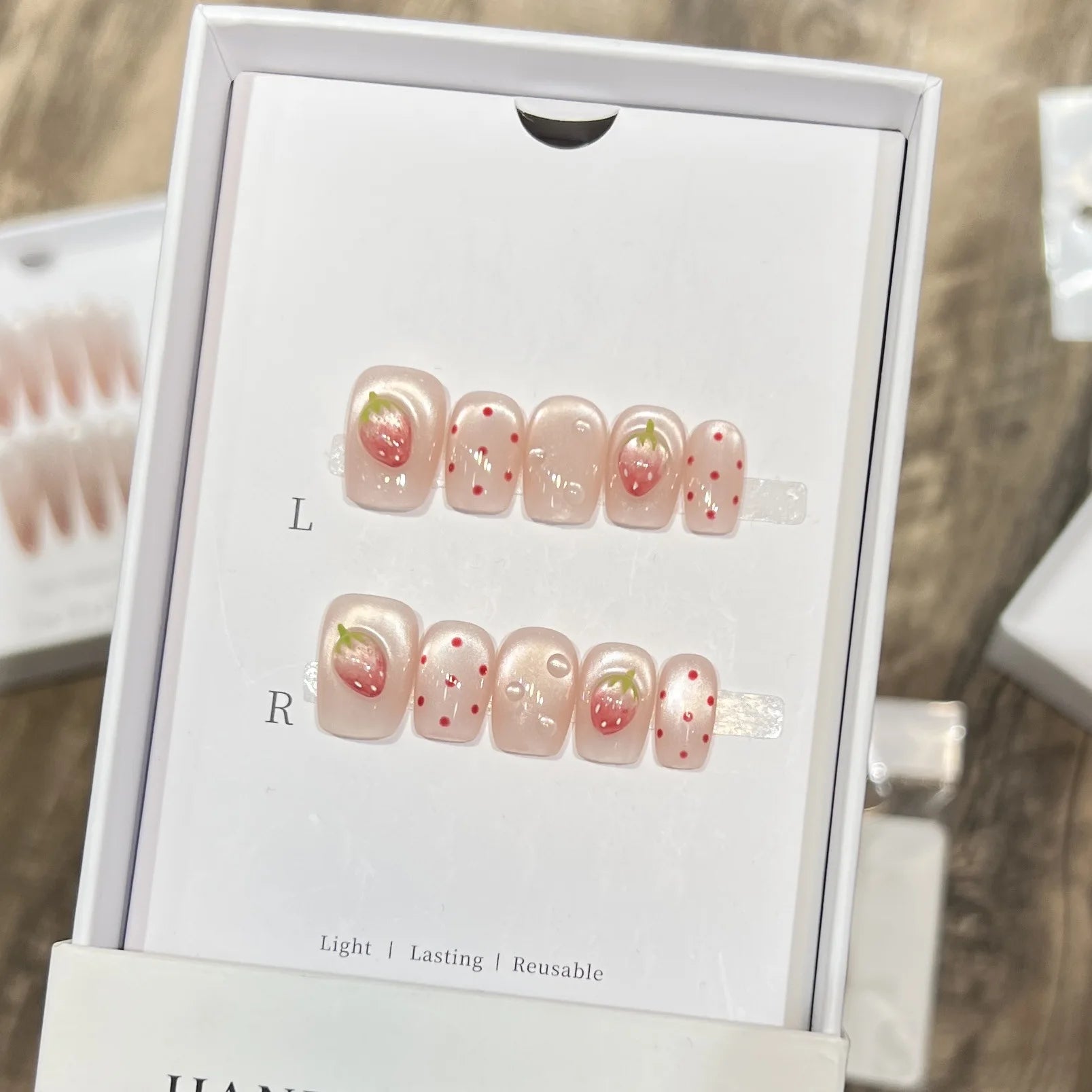 10Pcs Handmade Press on Nails Sweet Cute Fruit Full Cover Butterfly Rhinestone Short Square Ballerina Wearable Fake Nails Tips