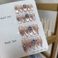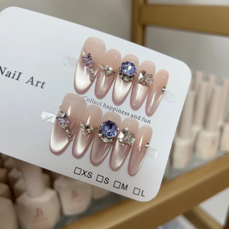 10pcs high-end Light luxury cat-eye gradient purple beveled small diamond butterfly pile diamond handmade fake nails, Simple and