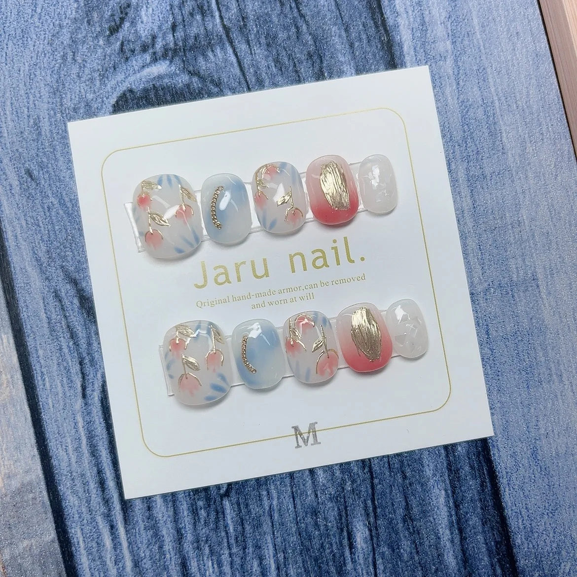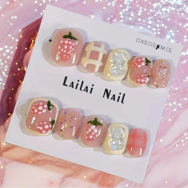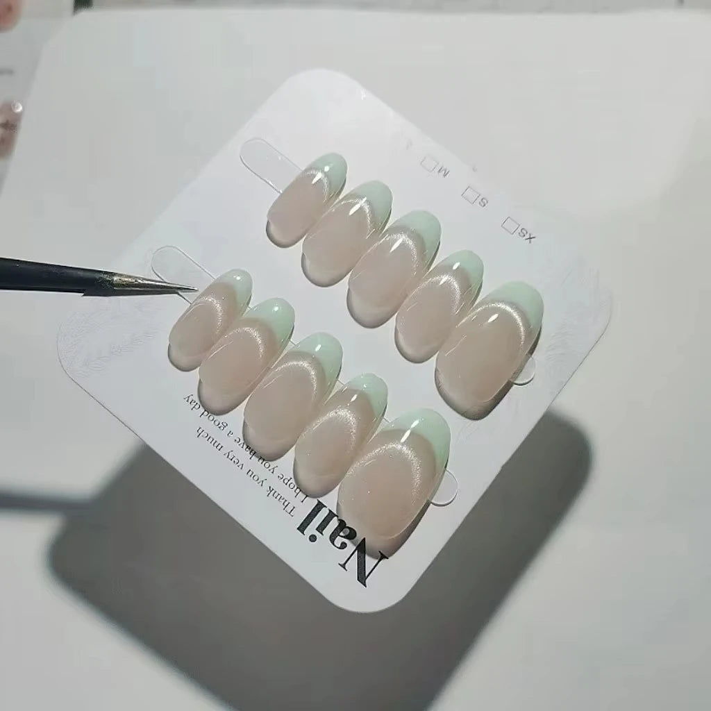 10pcs Pink French Handmade Nails Short French style Handmade Wear Nail for Women&Girl Whitening Nail Stickers False Nail