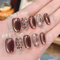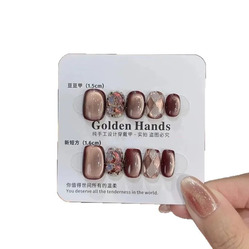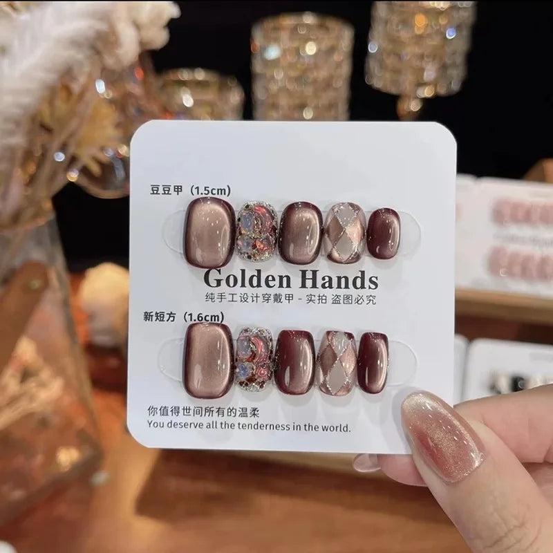 10pcs Press On Nails Lava Black Chocolate Maillard Check False Nail for Women&Girl Removable Wearable False Nail Art Daily Wear