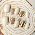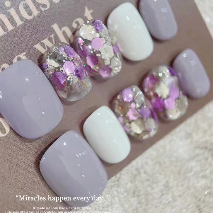 10Pcs Pure Color Handmade Short False Nail with Glue Press On Nails Full Cover French Round Head Manicure Wearable Nail Tips Art