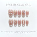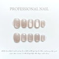 10Pcs Reuse Finished Fake Nails with Butterfly Deisgn Pink Cat's Eye French Handmade Press on False Nails Wearable Nail Art Tips