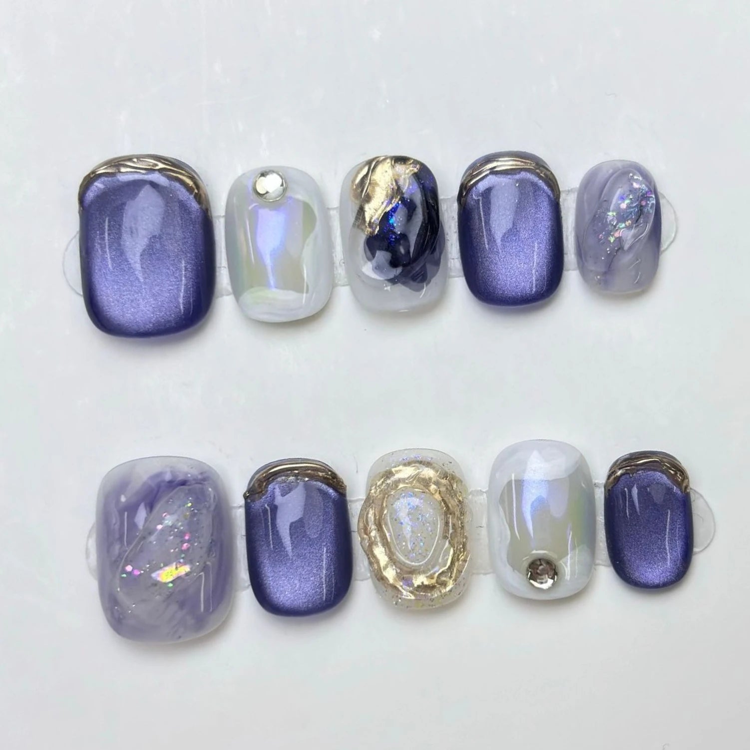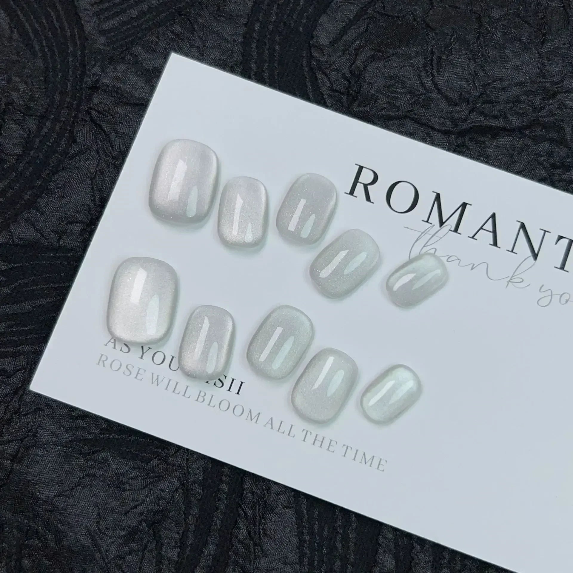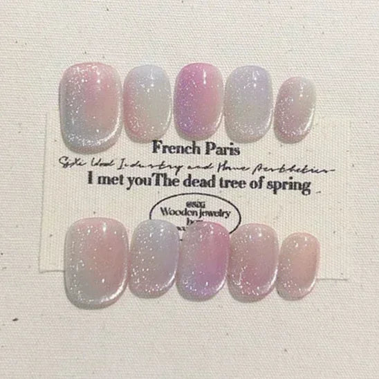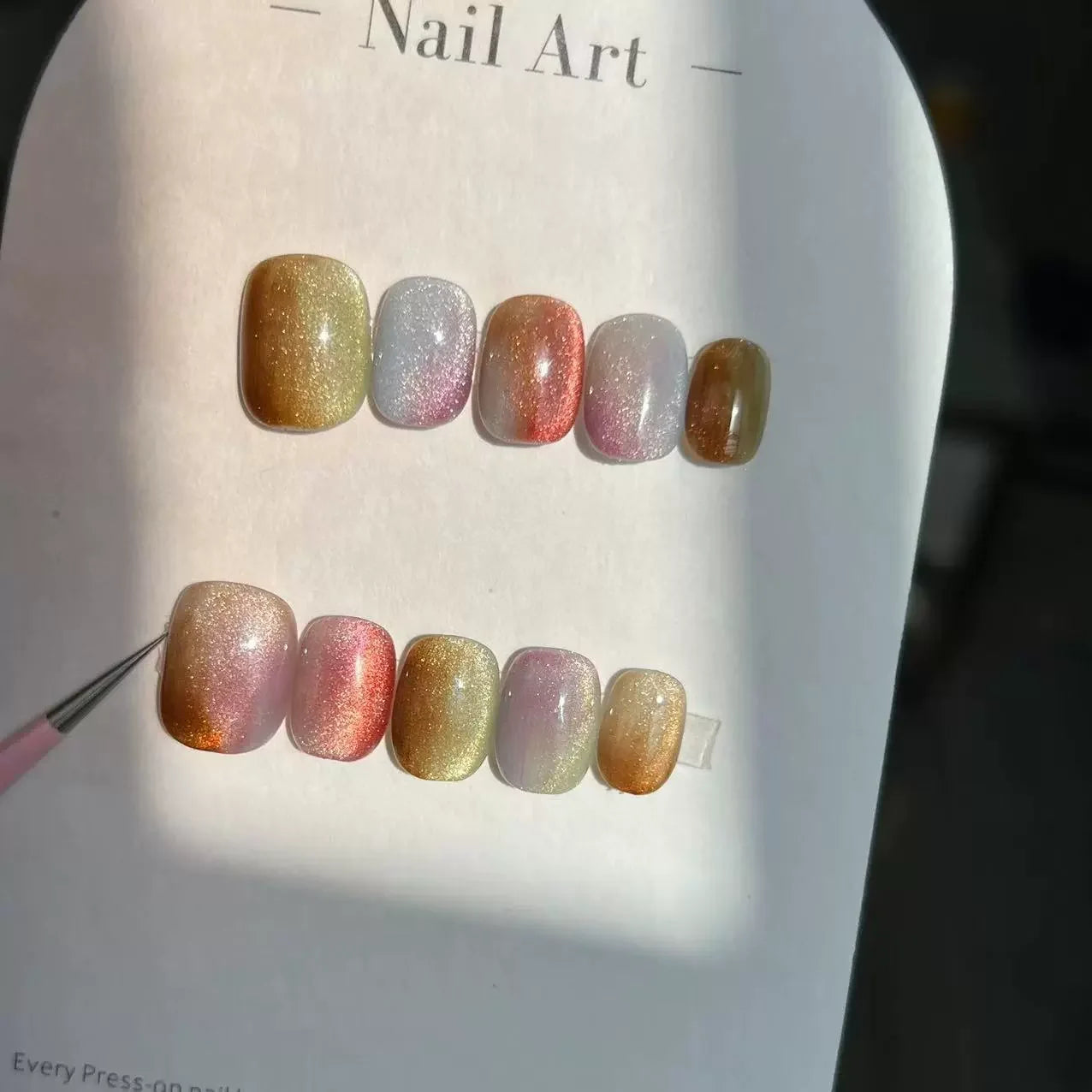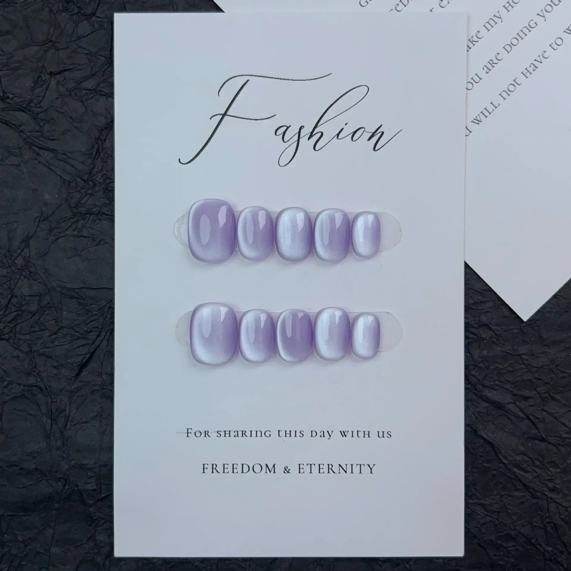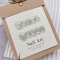 10Pcs Short Handmade Light Green Press On Nails Cat Eyes Pure Ballerina Decoration Wearable False Nails Full Cover Nail Tips Art