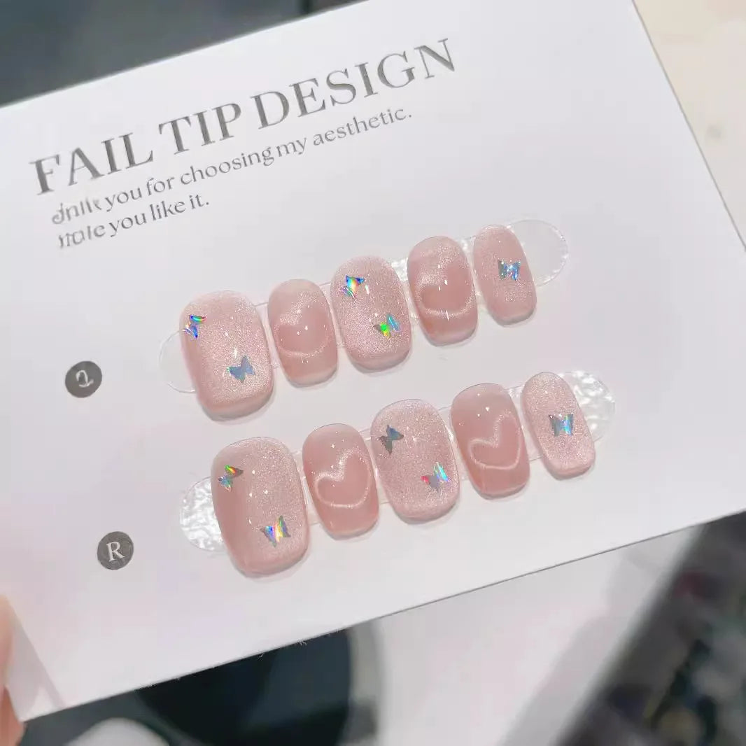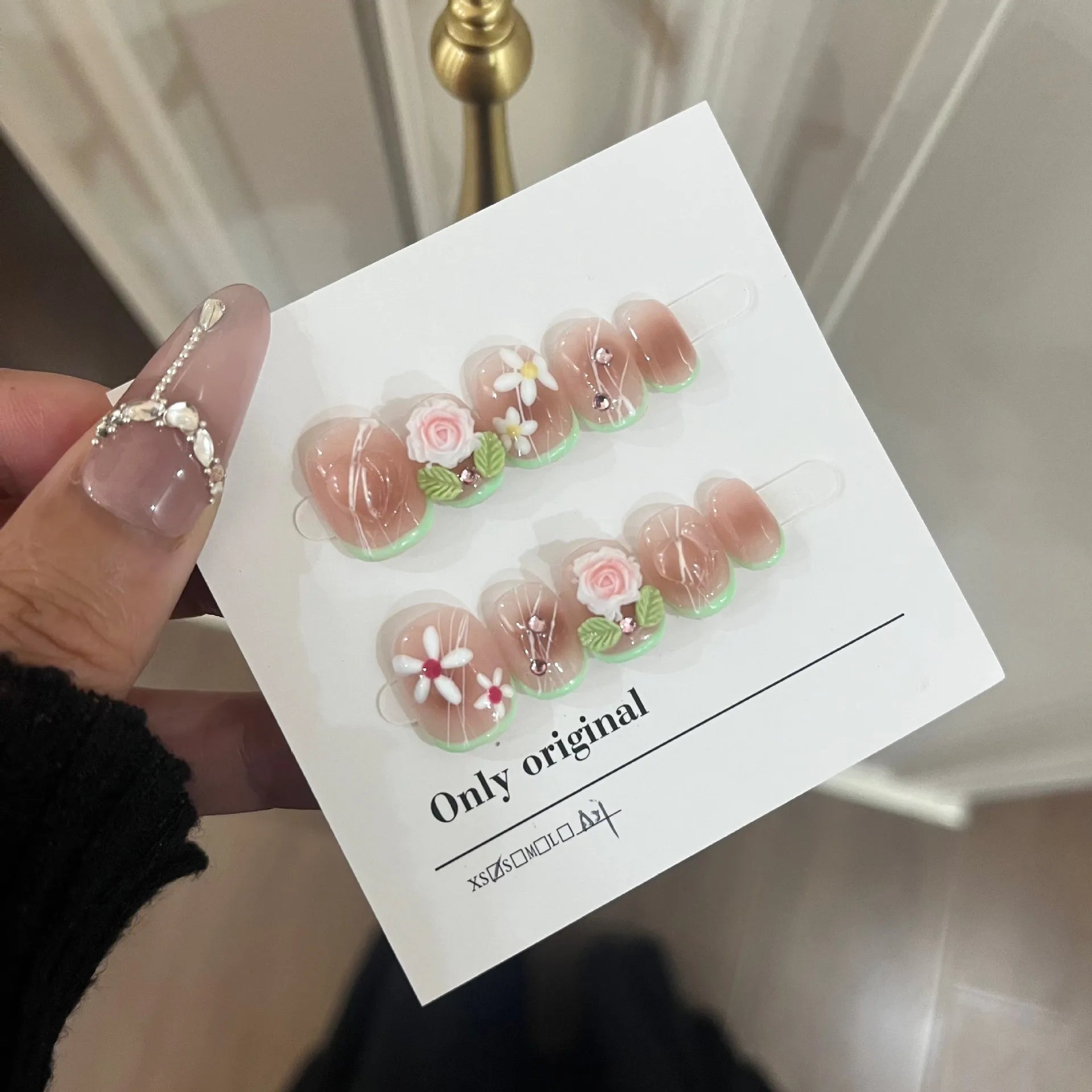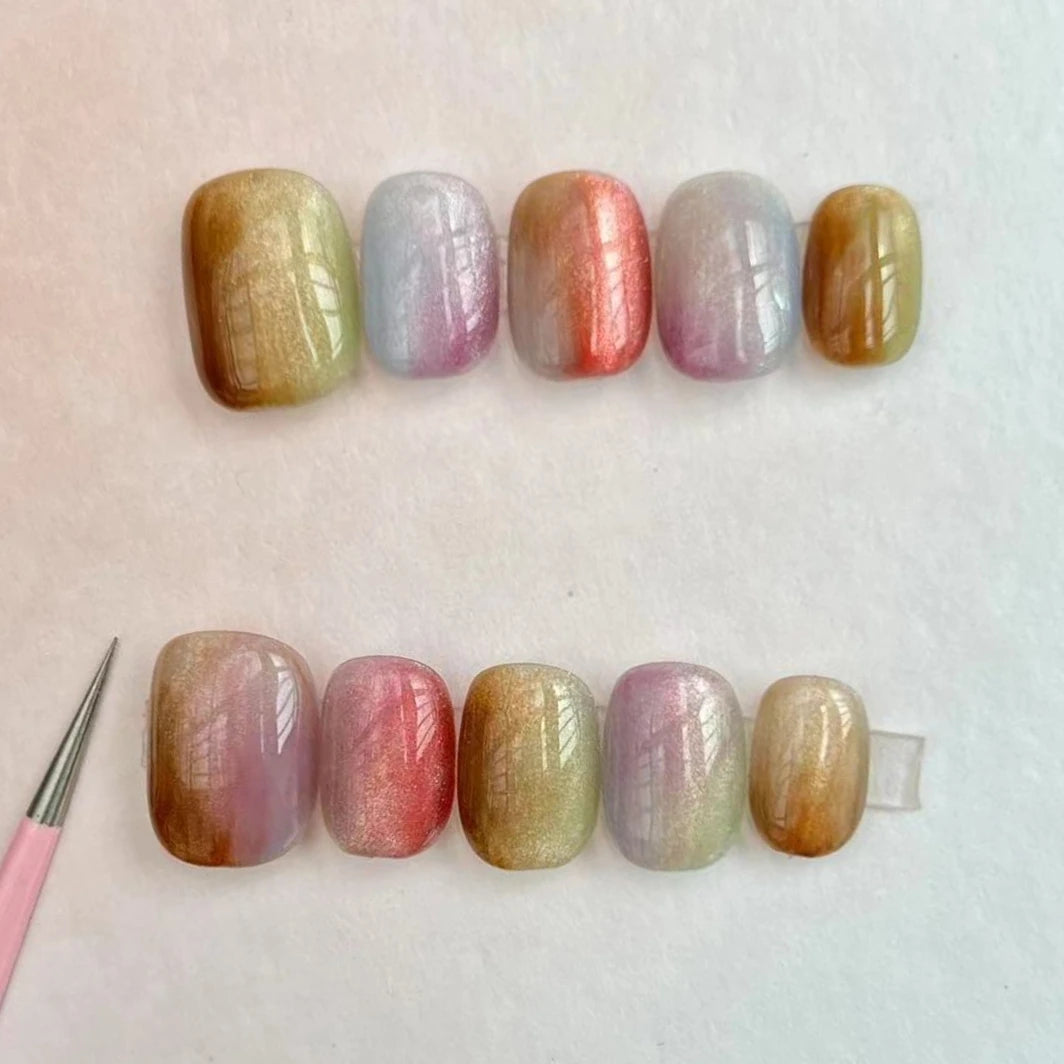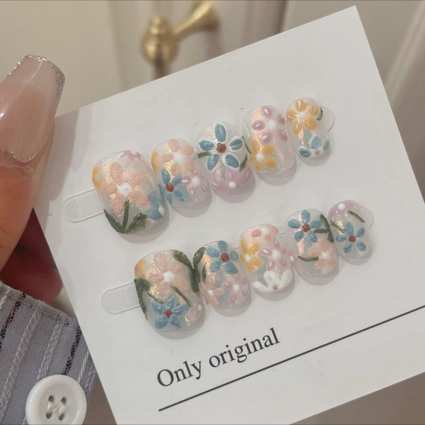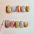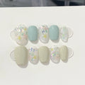 10Pcs Short Handmade Press On Nails Full Cover Flower Design Summer Colorful Rhinestone False Nails Wearable Manicure Nail Tips
