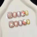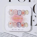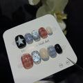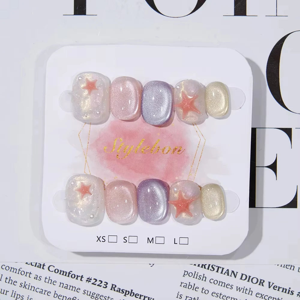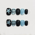 10pcs Short Oval Shaped Press-On Nails - Color Block Stripes & Star Designs Glossy Mix-and-Match False Nails for Women and Girls