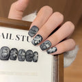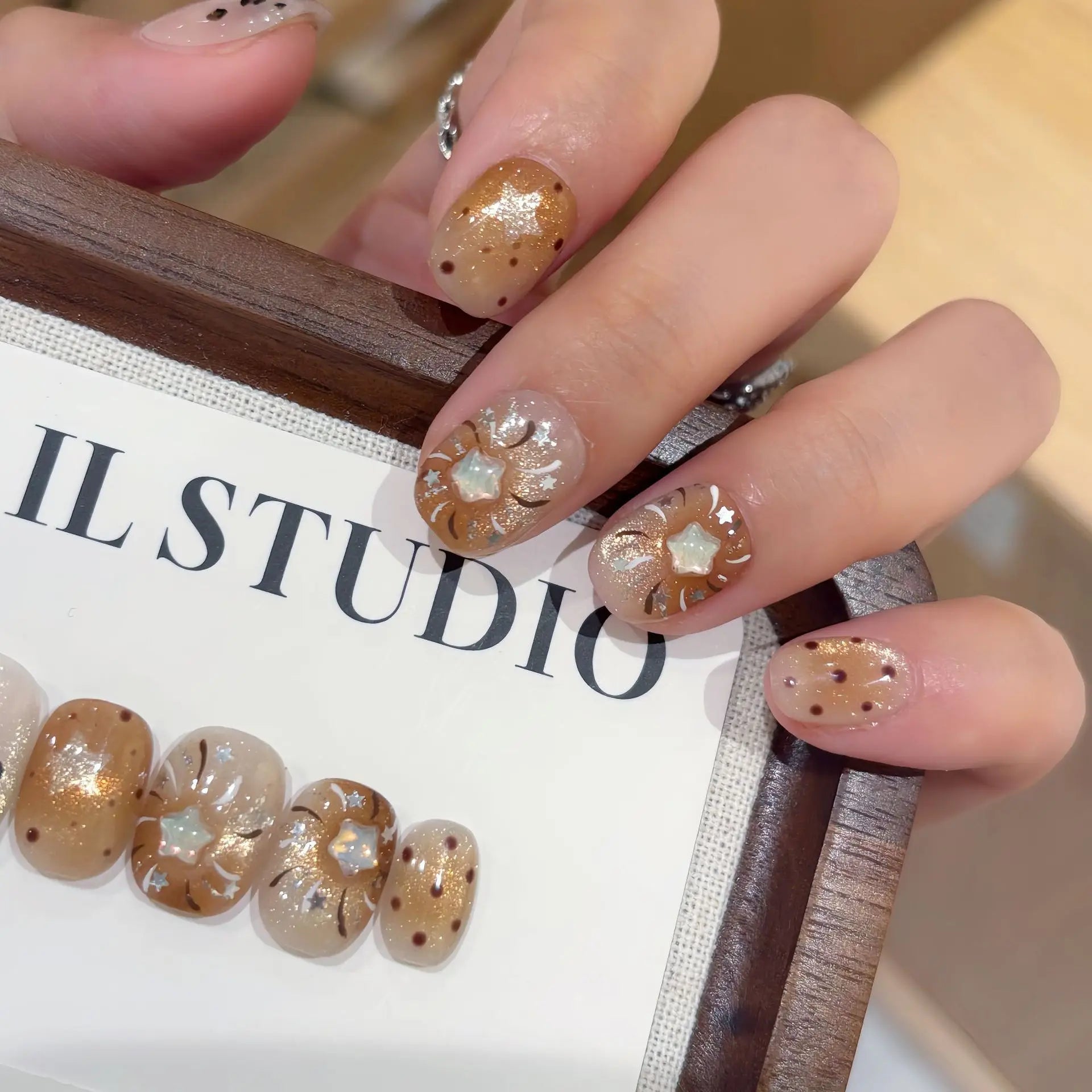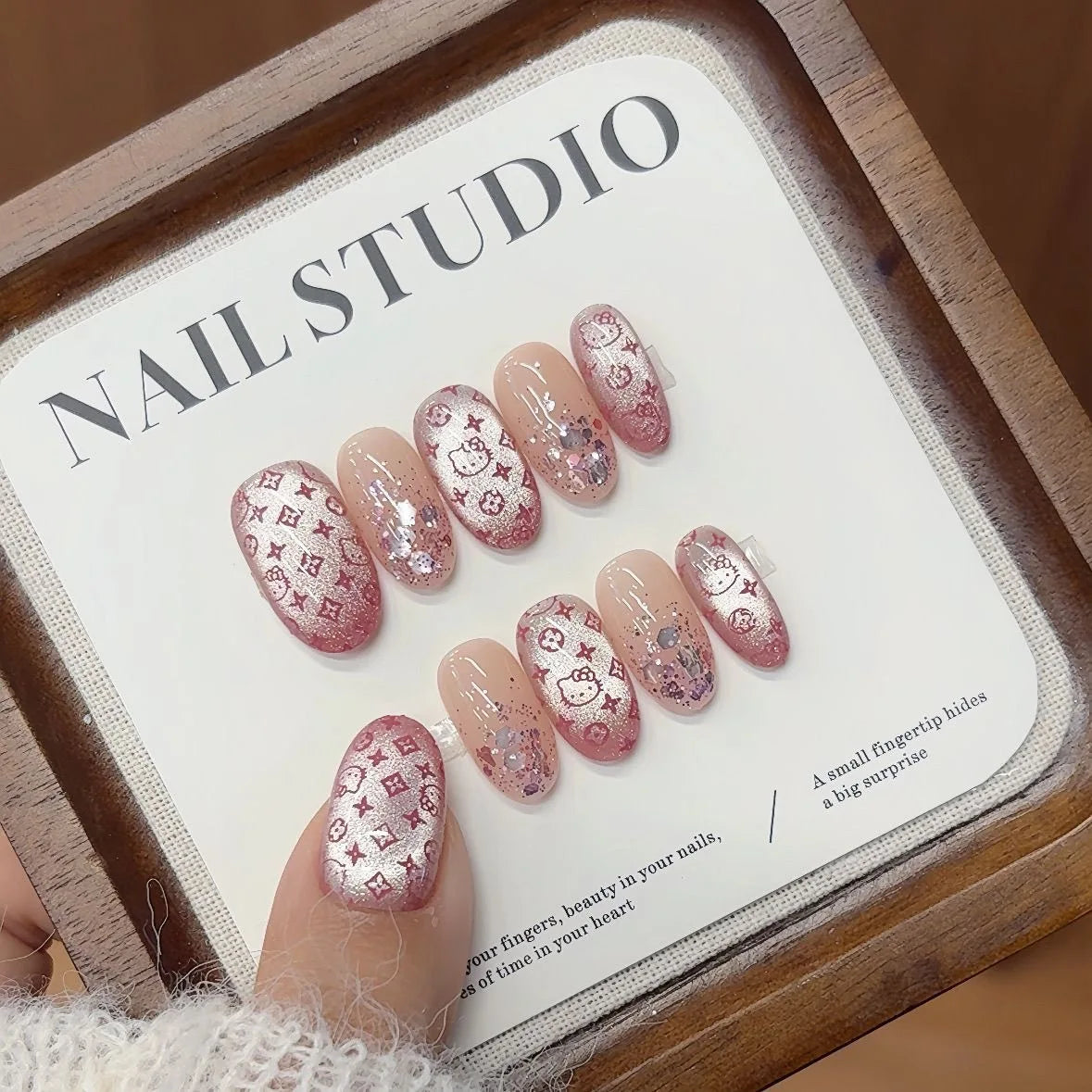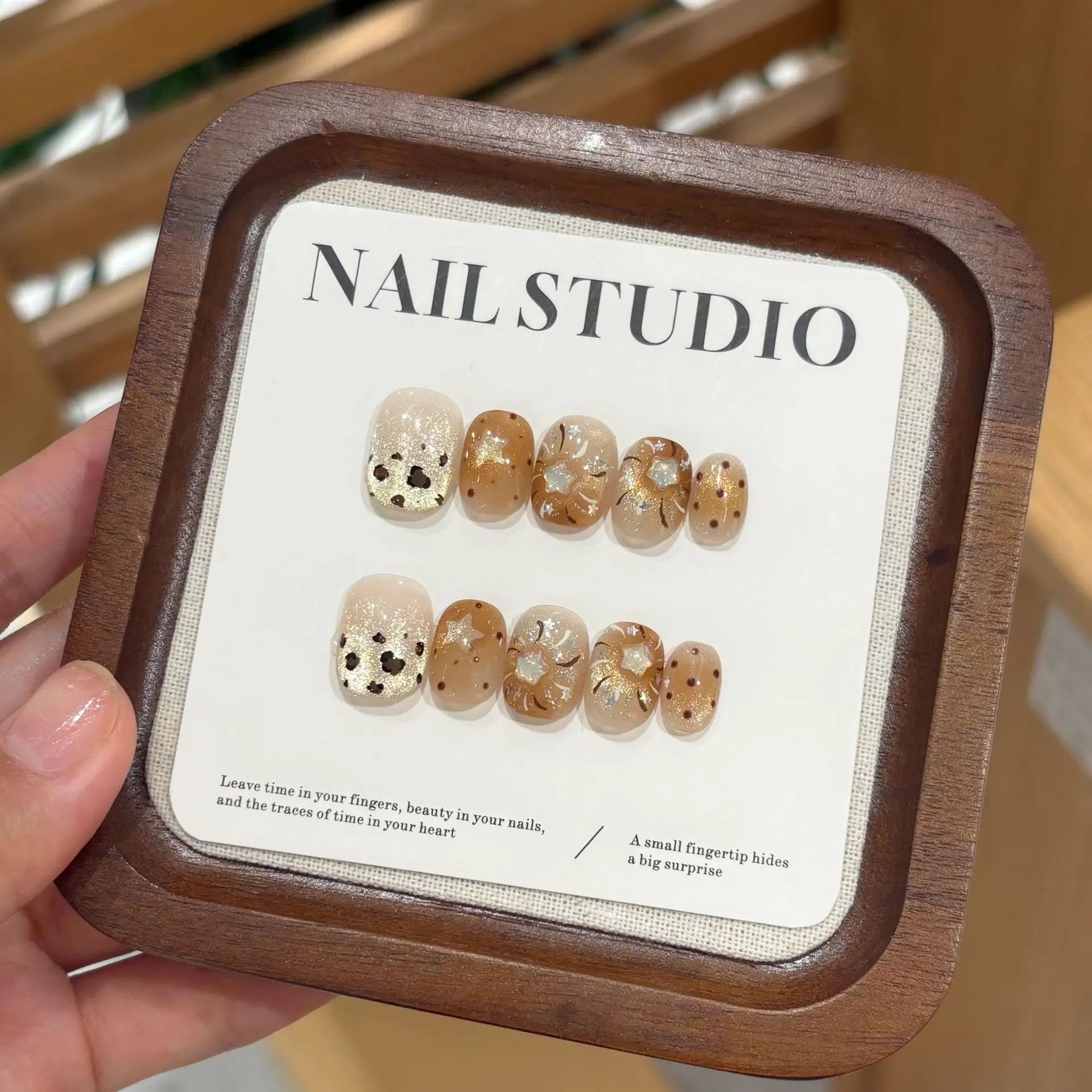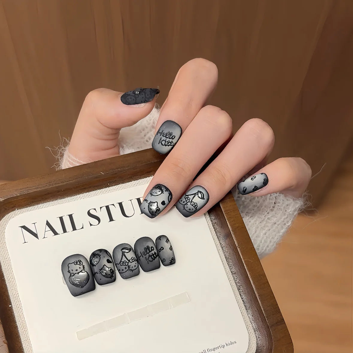 10PCS Summer BrownThe Polka Dot Cat's Eye Short Nail Art Hello Kitty Cute Notes Handmade Acrylic Fake Nail Gift