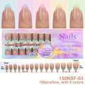 150Pcs/Box Acrylic Press on Nails Full Cover Fake False Tips Soft Gel Extension T-shaped Oval Capsule Almond Sculpted Salon DIY