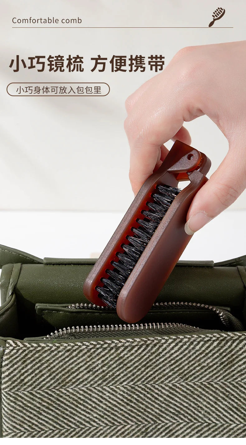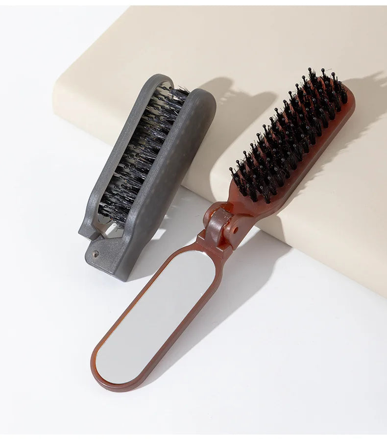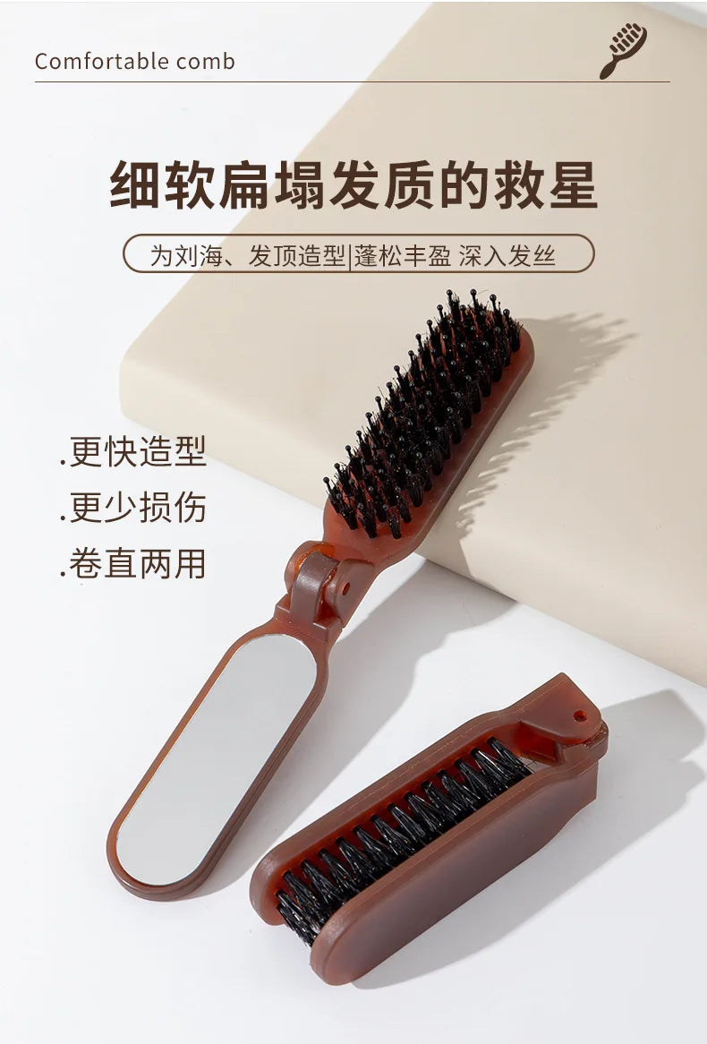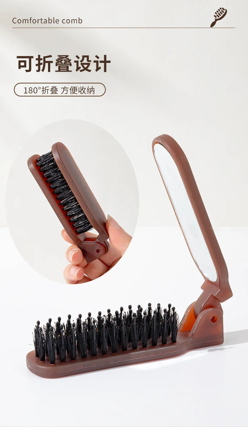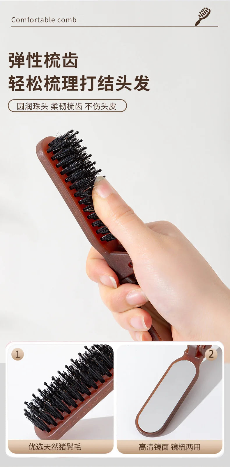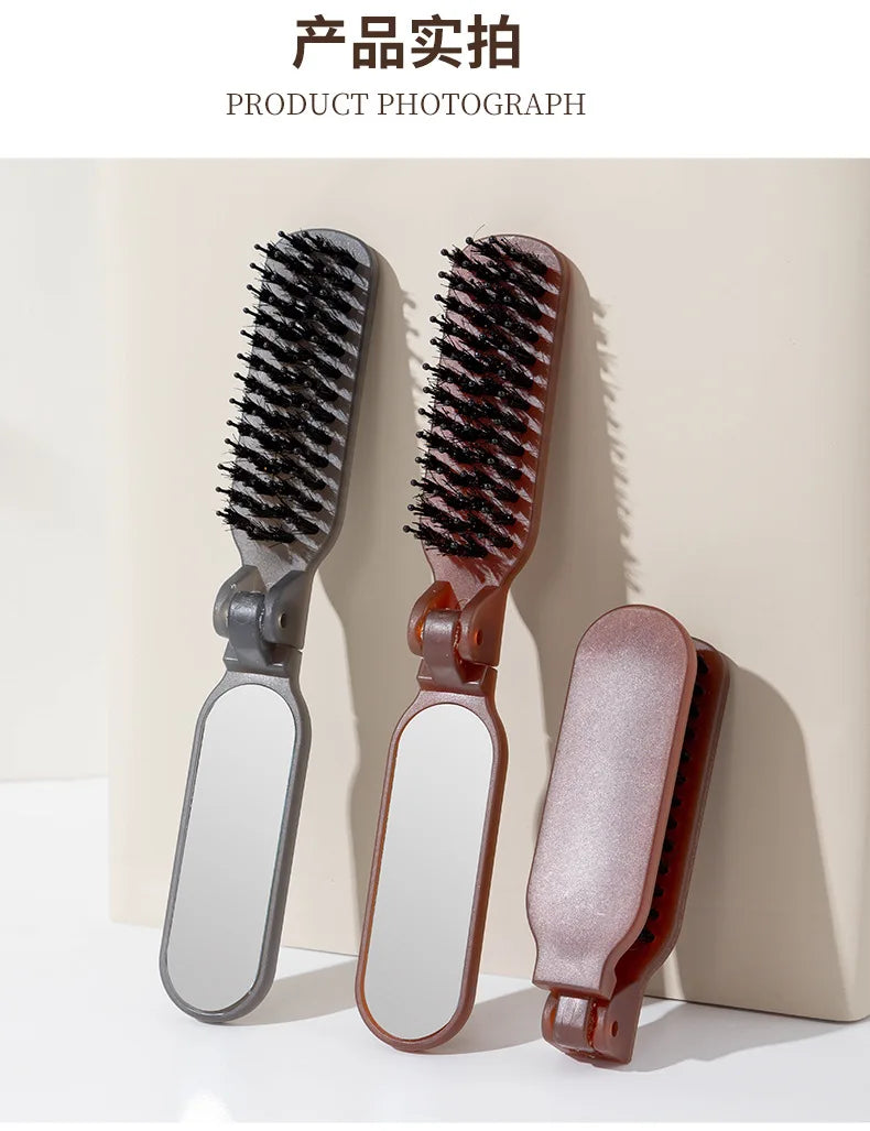 1Pc Foldable Bristle Comb with Mirror Mane Bristle Hair Brush Portable Pocket Collapsible Travel Massage Salon Hair Styling Tool