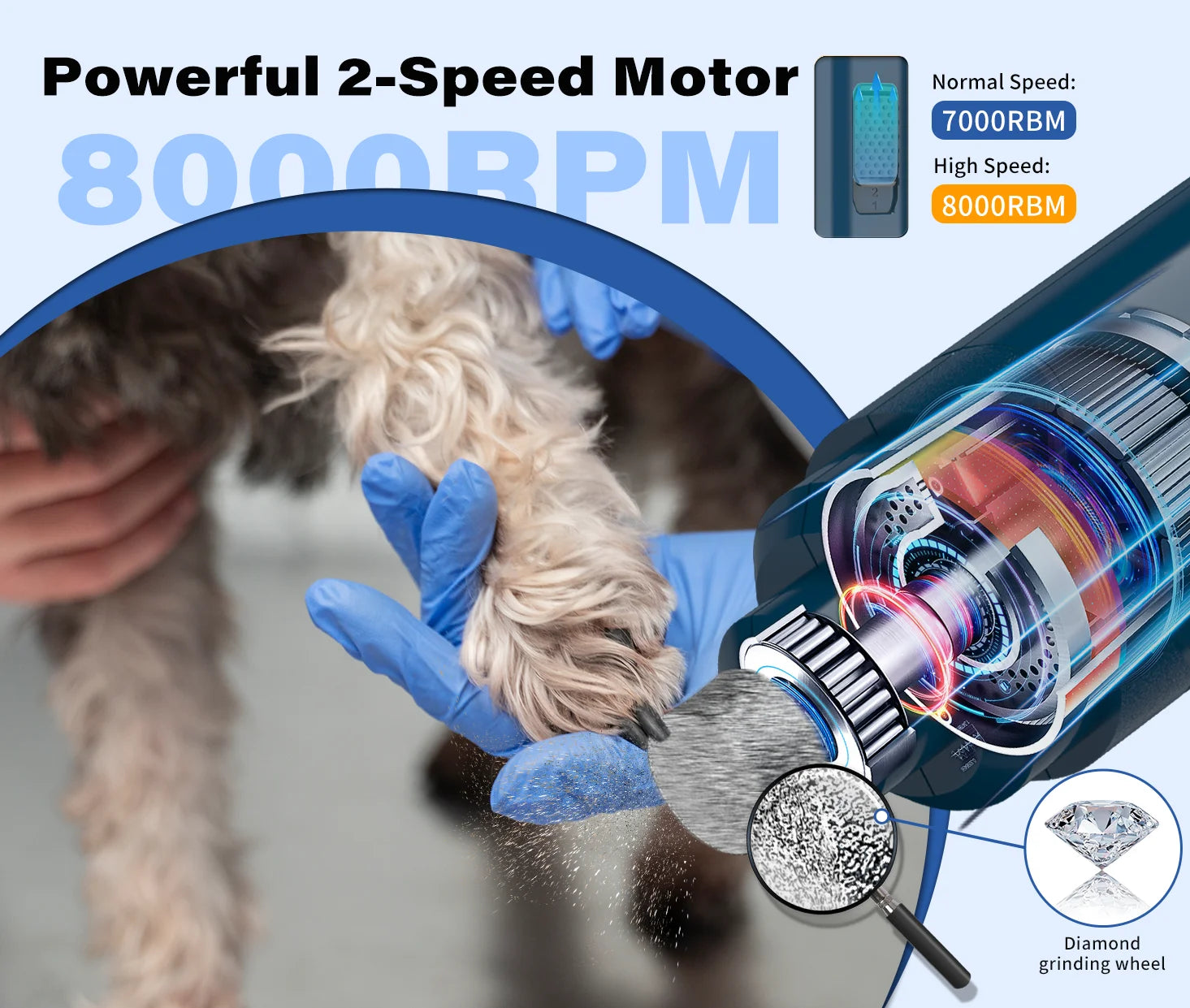 2-Speed Dog Nail Grinder Enhanced Pet Nail Grinder Super Quiet Rechargeable Electric Dog Nail Trimmer Painless paws grooming