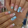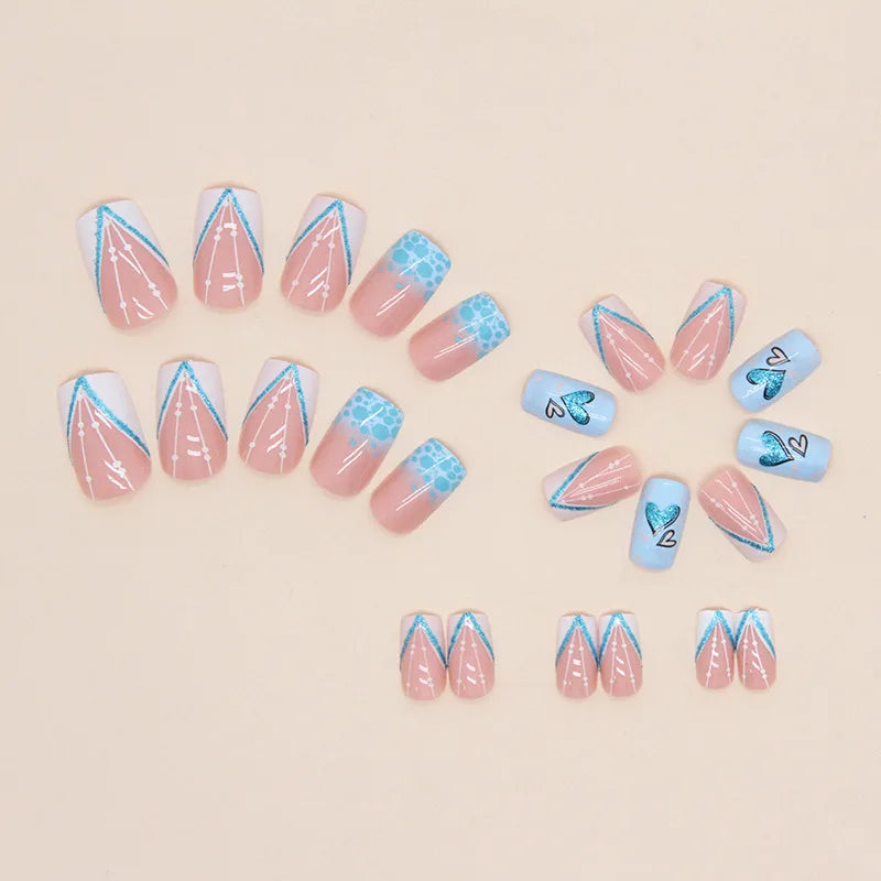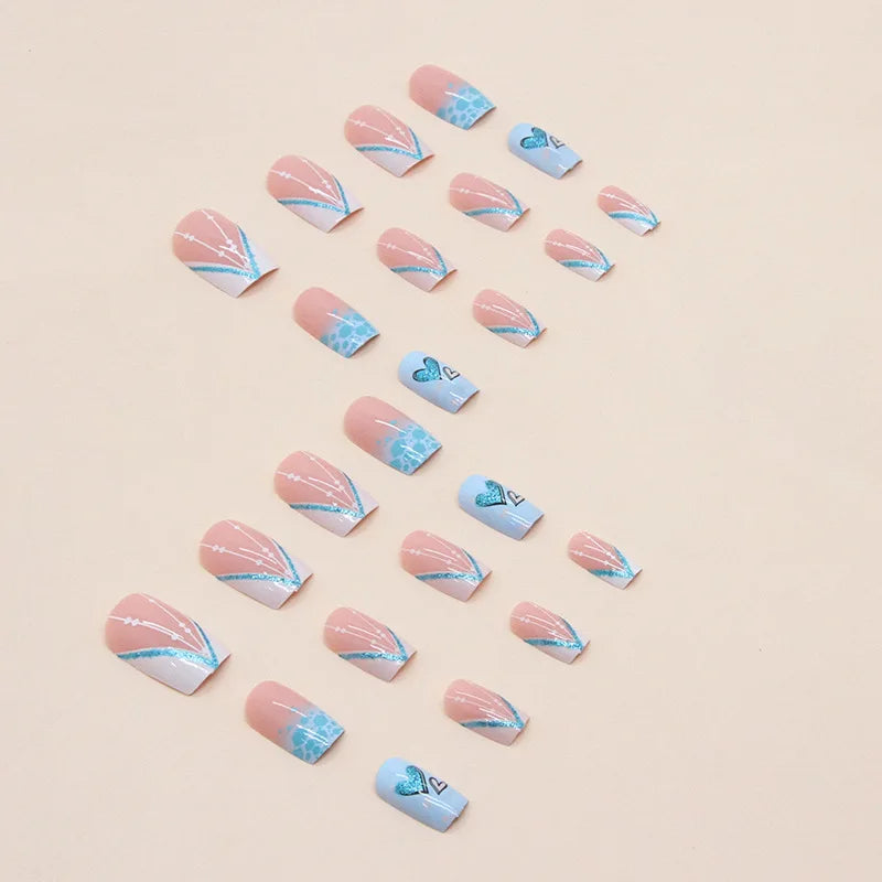 24 pcs short square French Minimalist Heart Glitter nails +1 nail glue +1 nail file