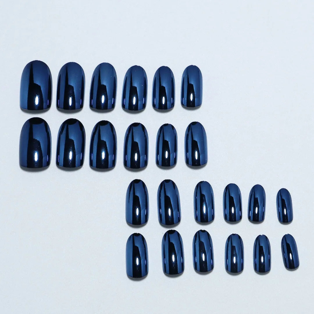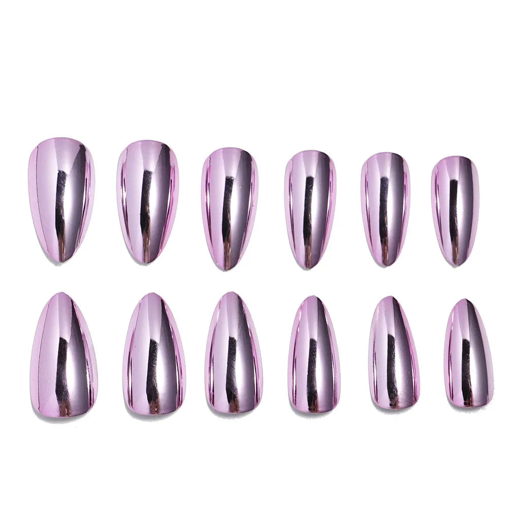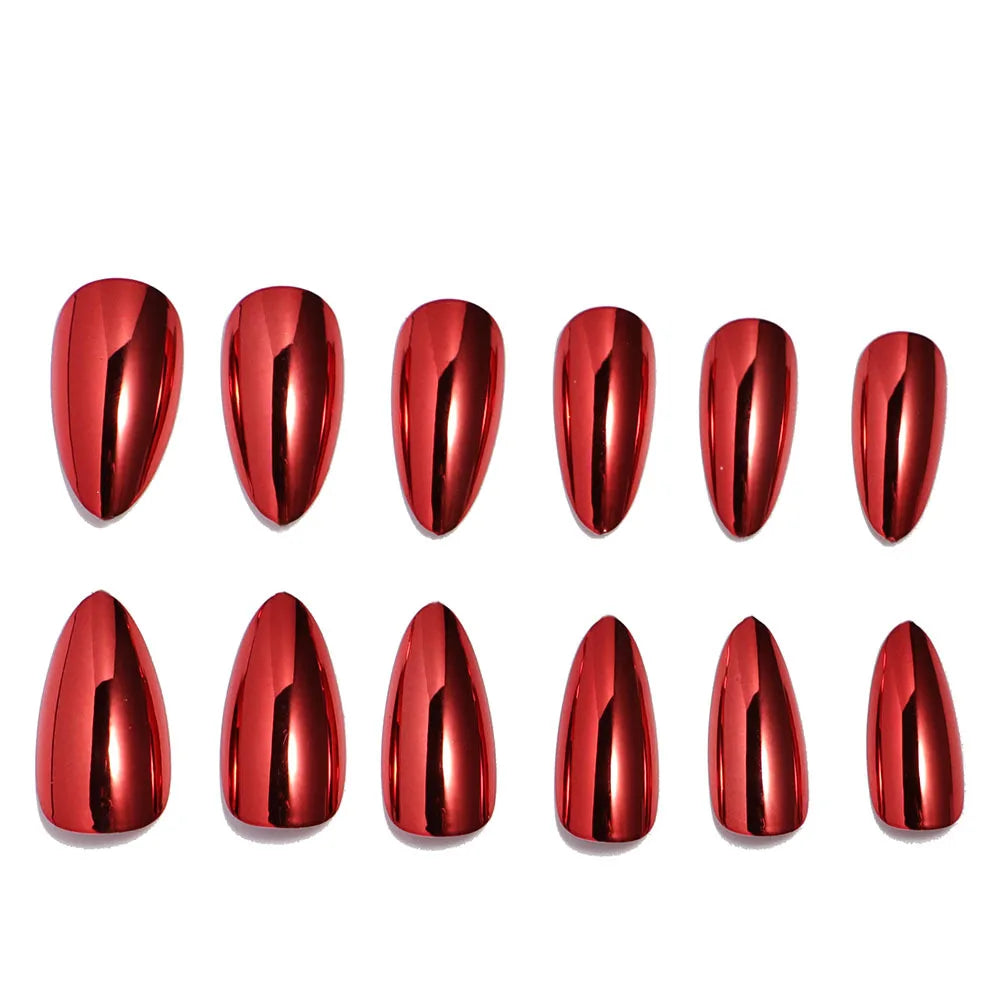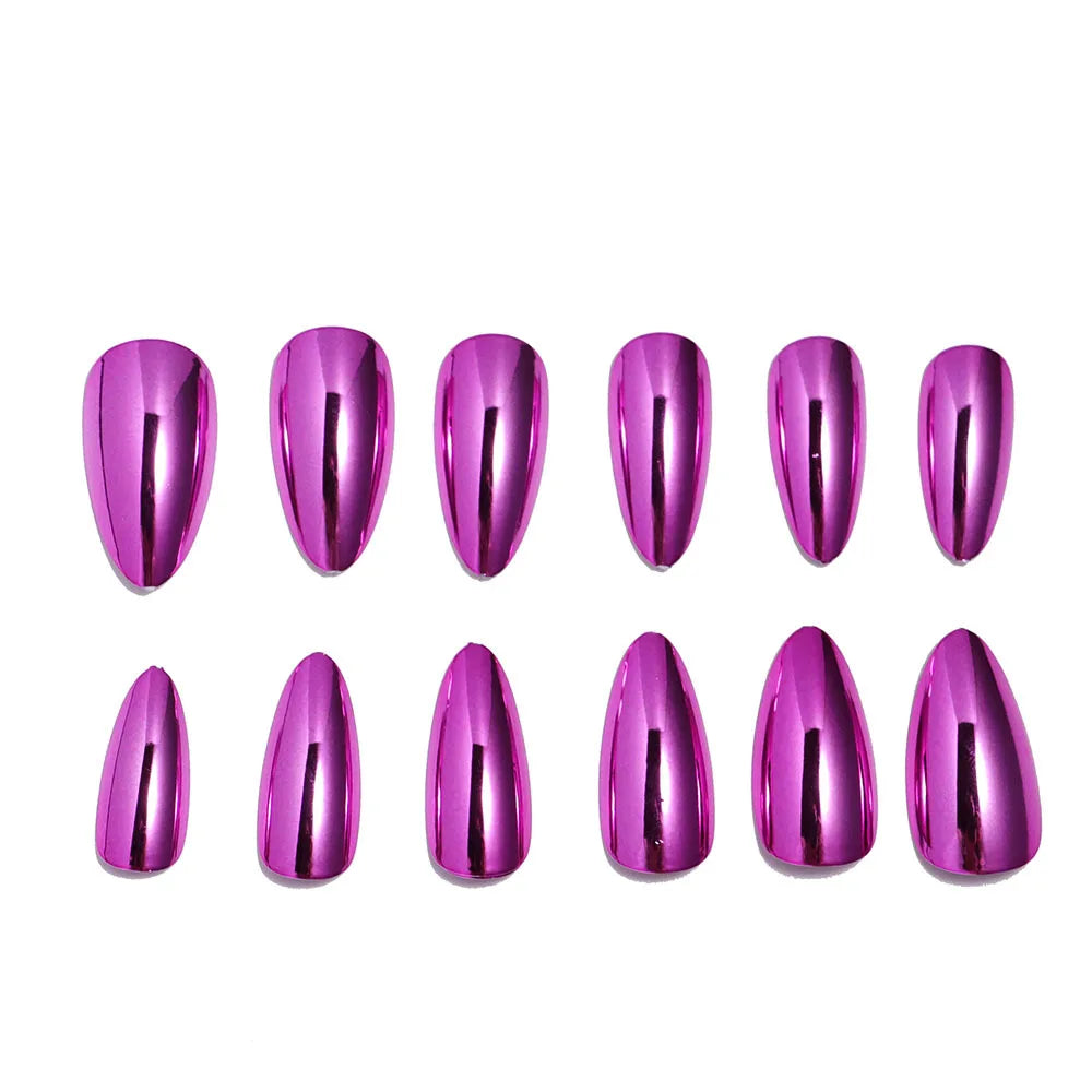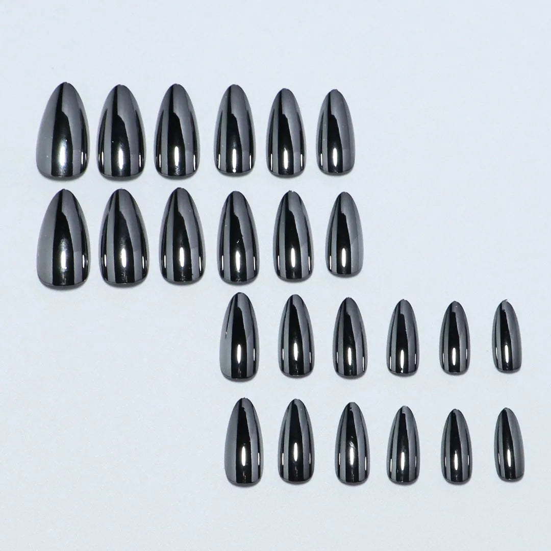 24pc/set Medium almond fake nails metallic mirror red black purple blue golden tips faux ongles y2k press on acylic false nail