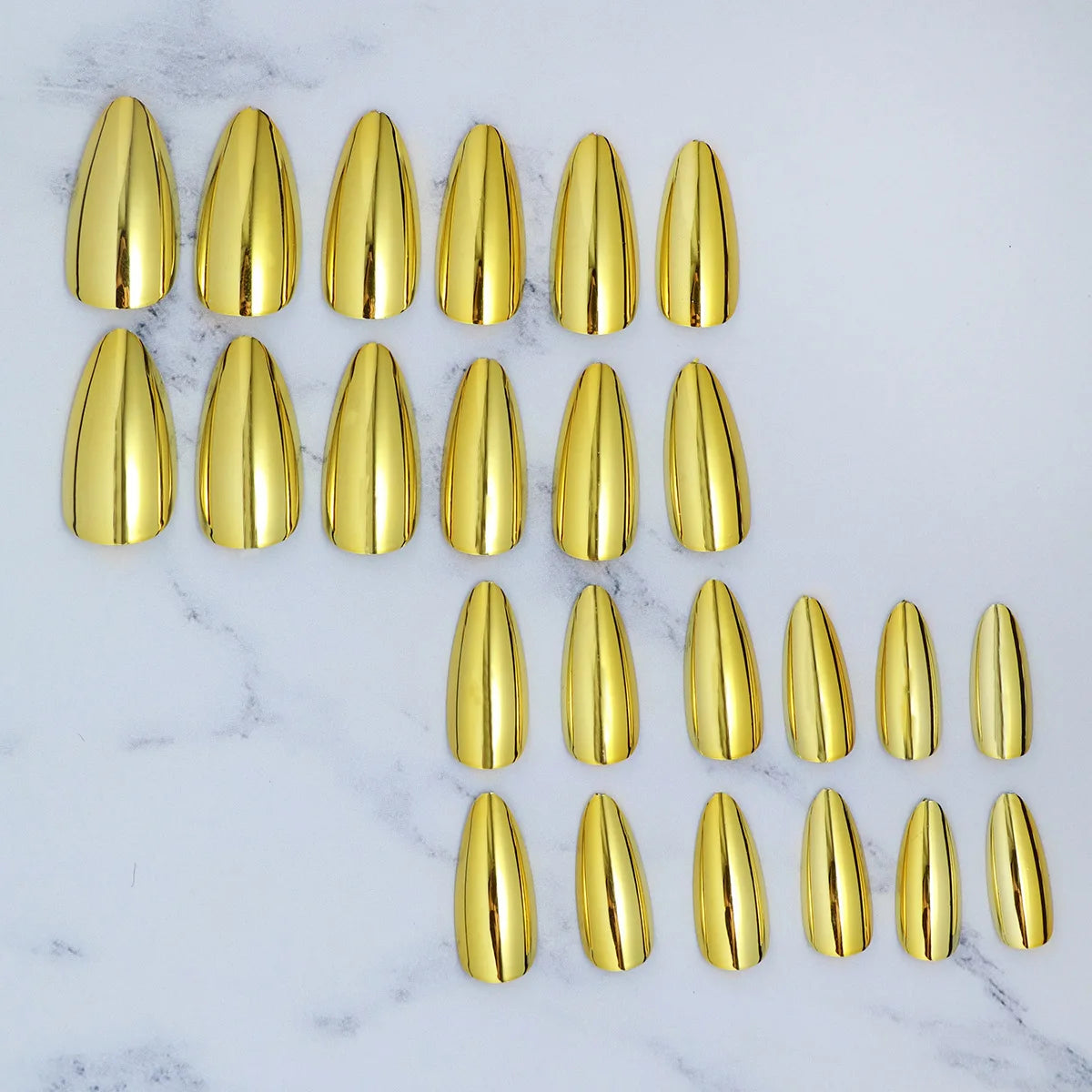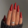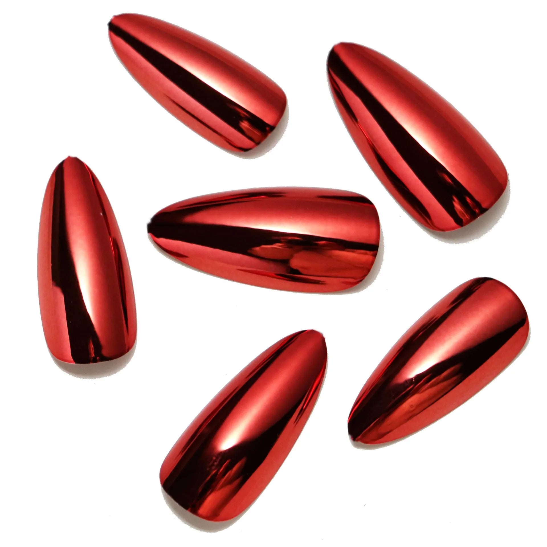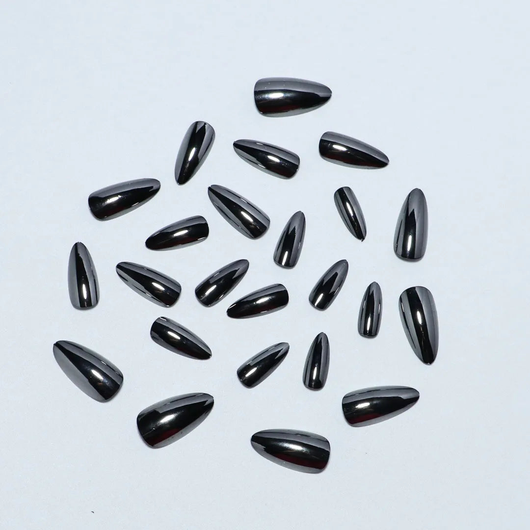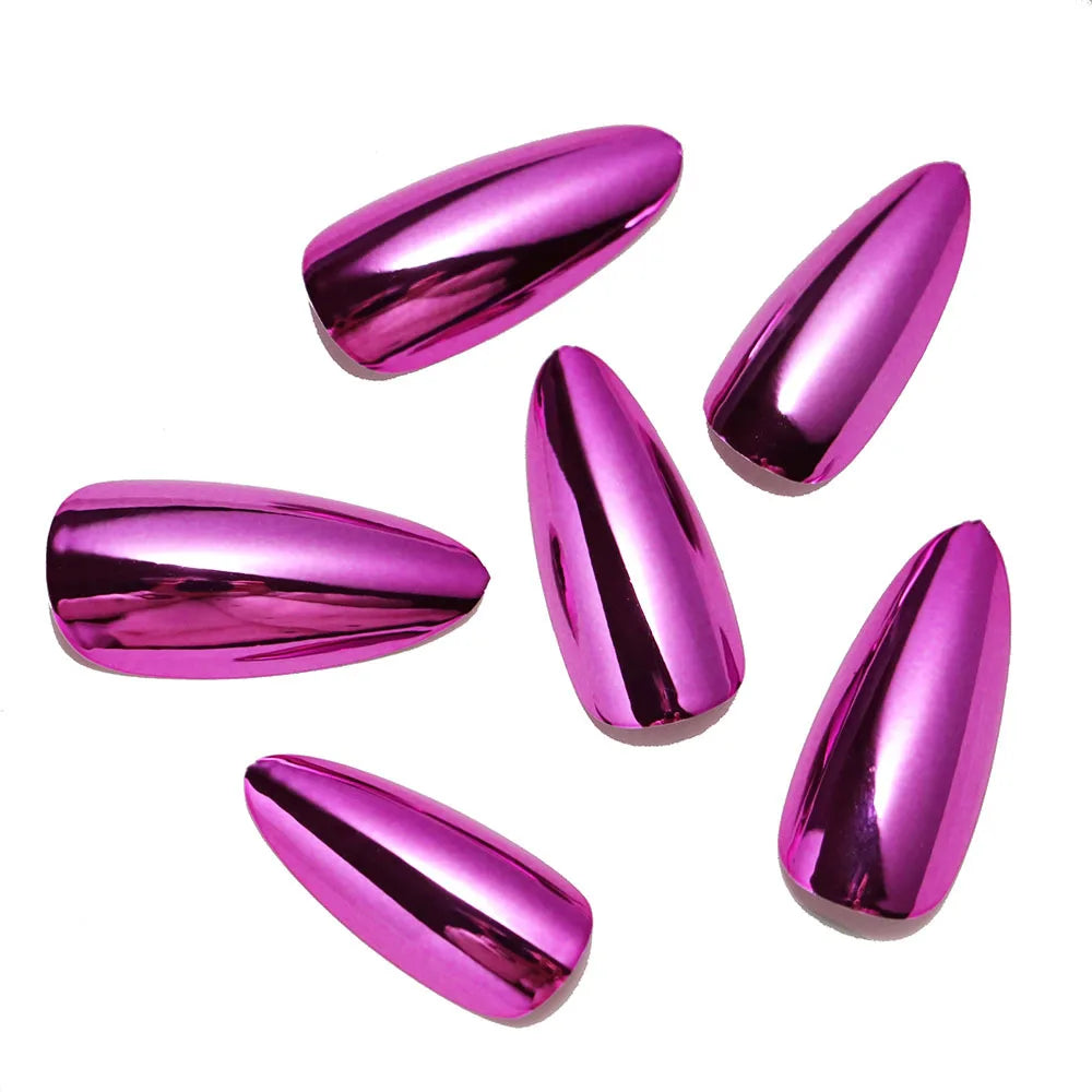 24pc/set Medium almond fake nails metallic mirror red black purple blue golden tips faux ongles y2k press on acylic false nail