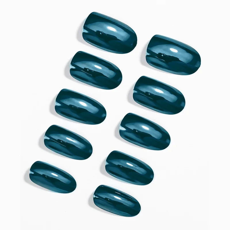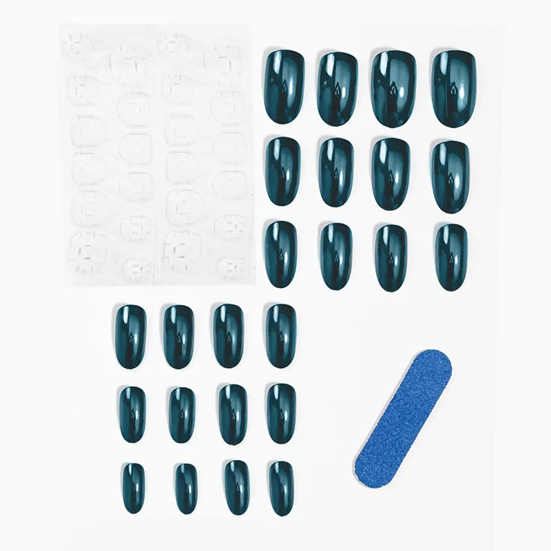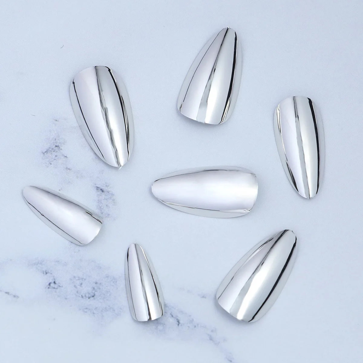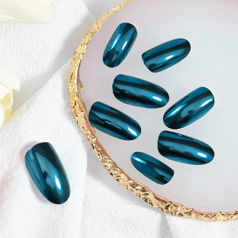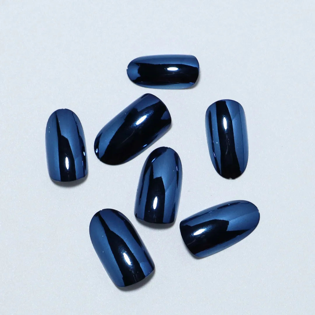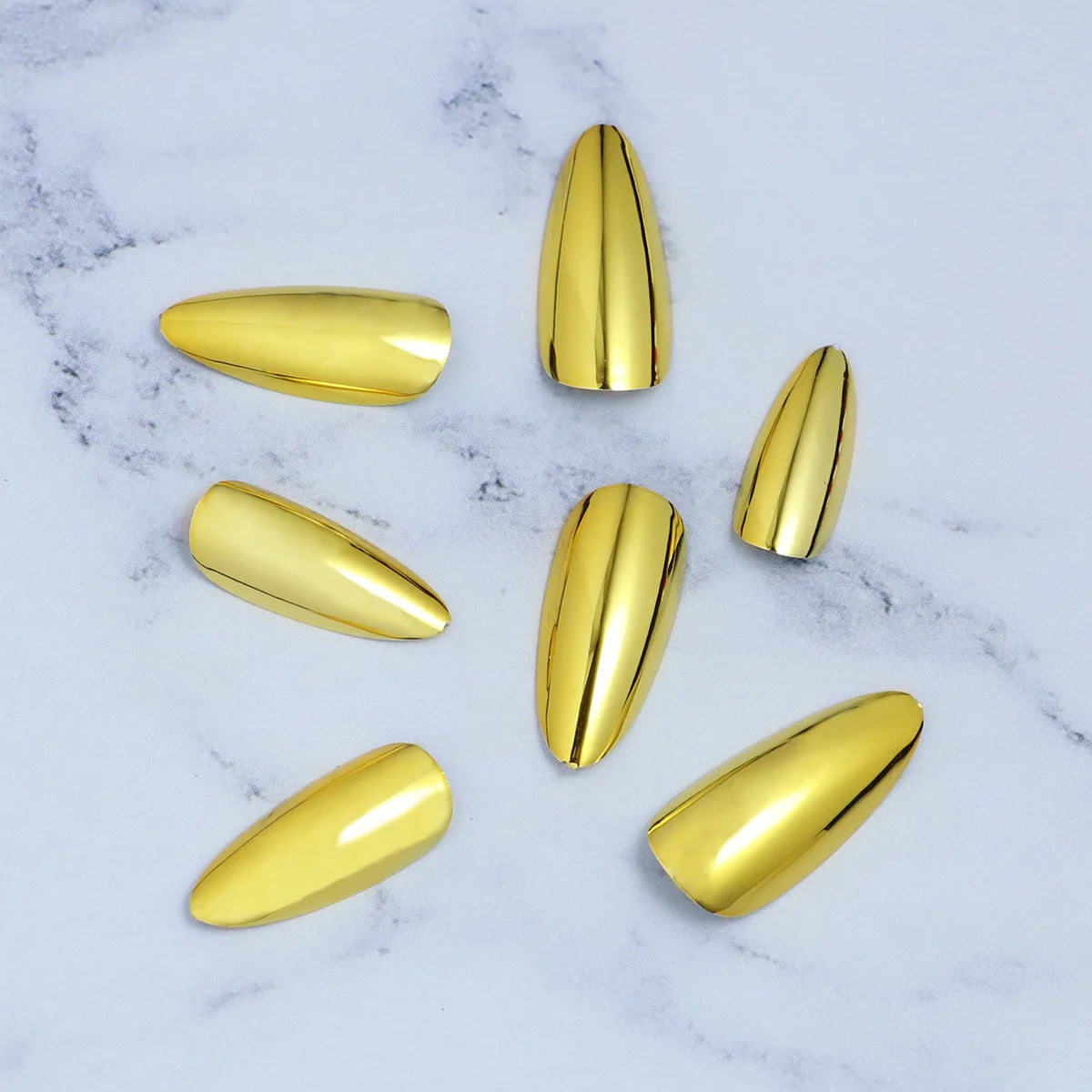 24pc/set Medium almond fake nails metallic mirror red black purple blue golden tips faux ongles y2k press on acylic false nail