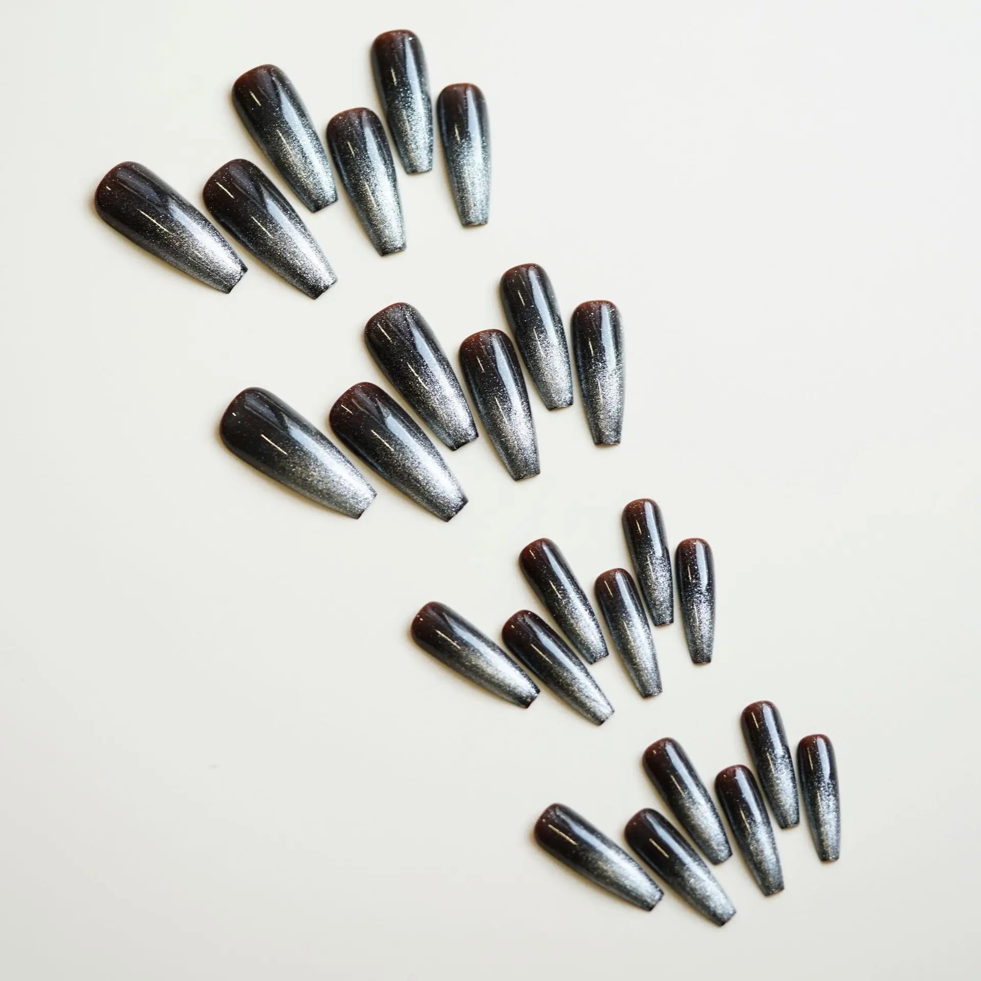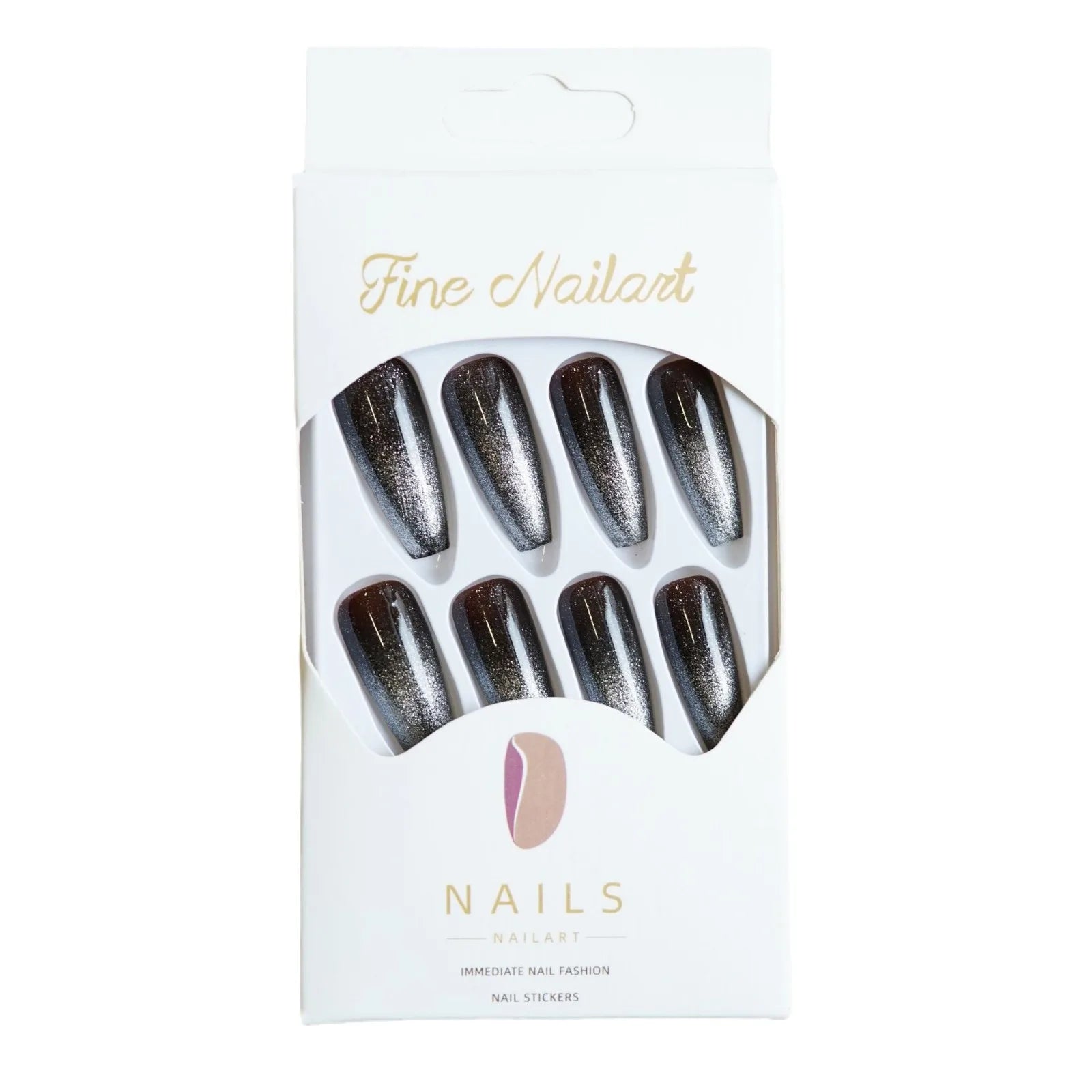24PCS/1BOX Coffee-colored Cat's Eye Fake Nails Phototherapy Hand-worn Armor Fake Nails