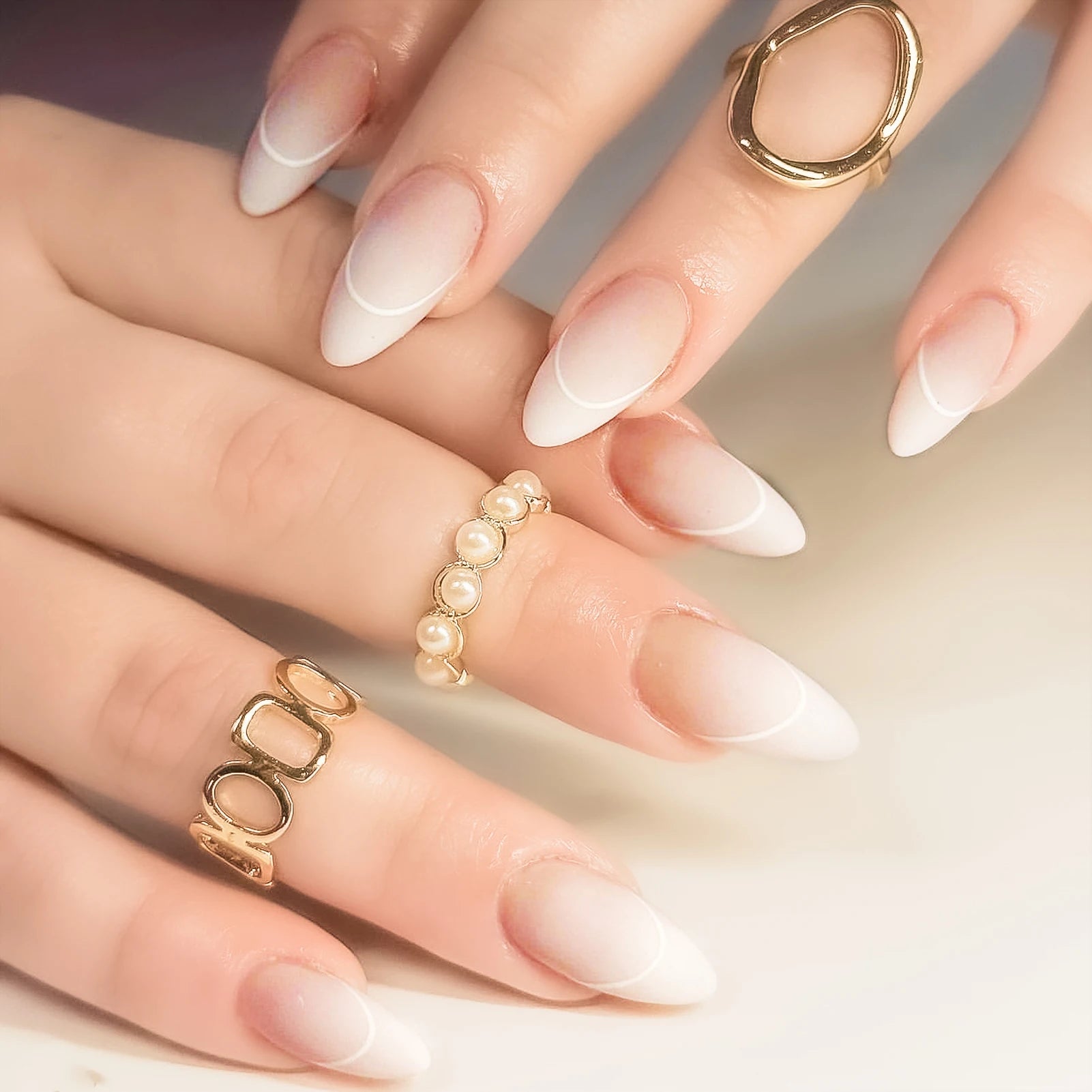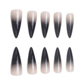 24pcs Black Gradients Long Paragraph Fashion Manicure Patch Reusable Adhesive False Nails Almond Fake Nails Press On Stiletto