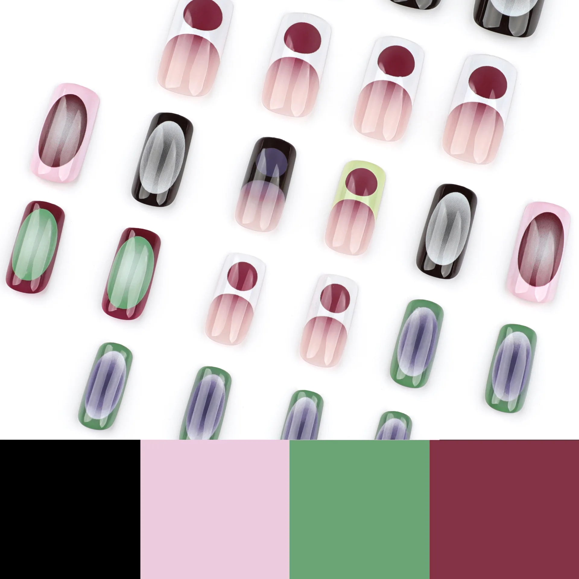 24pcs Blush French False Nails Fashionable Y2k Press On Nails Hand Painted Ballet Fake Nails Fashion Gradient Long Square Nails