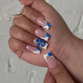 24pcs Blush Pink French Press On Nails Hand-painted White Flower Gold Ball Designs Fake Nail Short Square Korean False Nail Tips