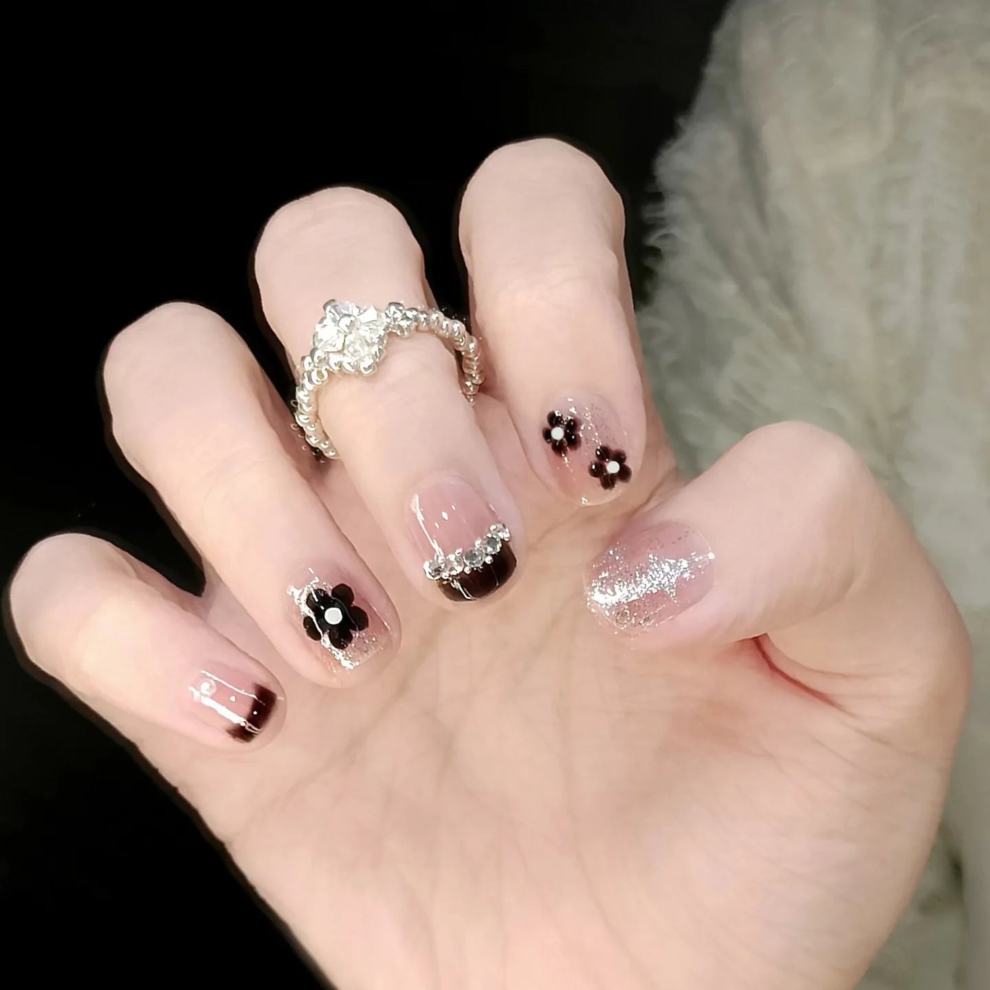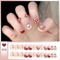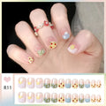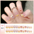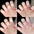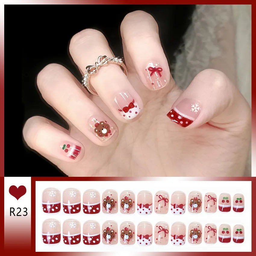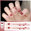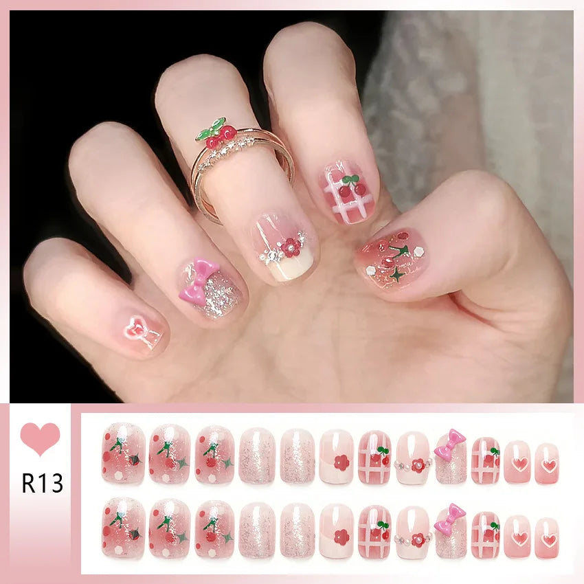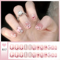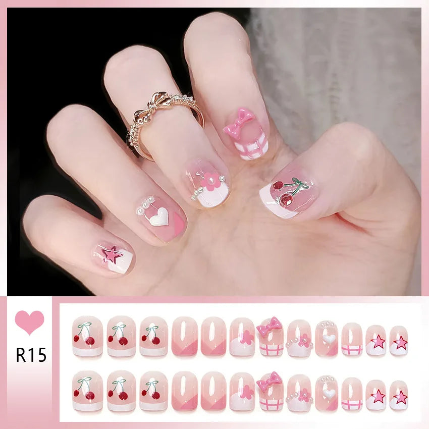 24pcs Bowknots Love Heart Pattern Press On Nails Cute Fresh Short Round French Style False Nails Korean Sweet Wearable Fake Nail