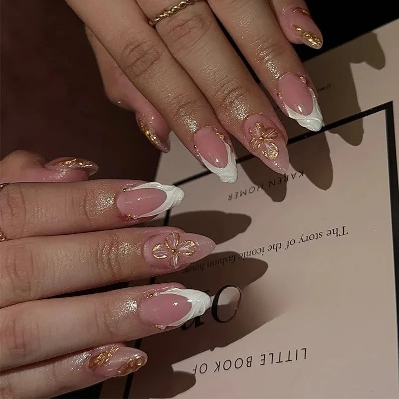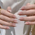 24pcs/Box Long Coffin False Nails Art Rose with Glue Wearable Nude Pink White Color Jelly Nails Tips Full Cover Press on Nails