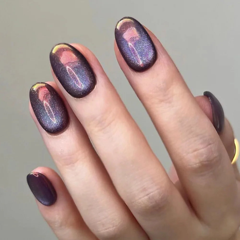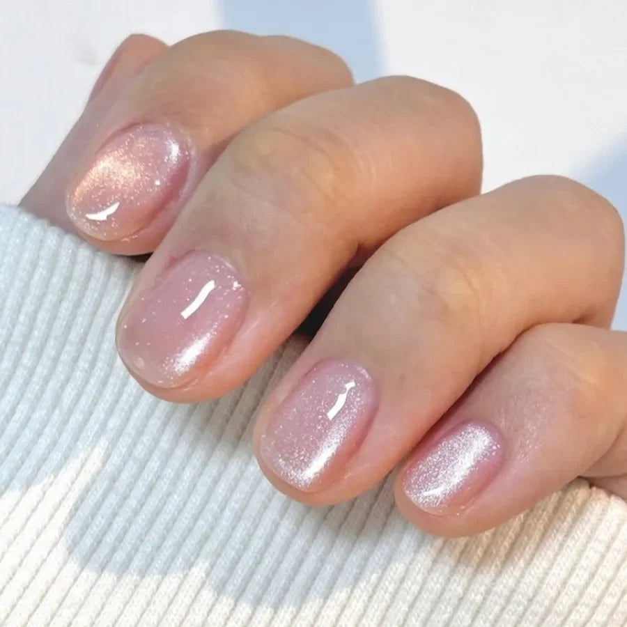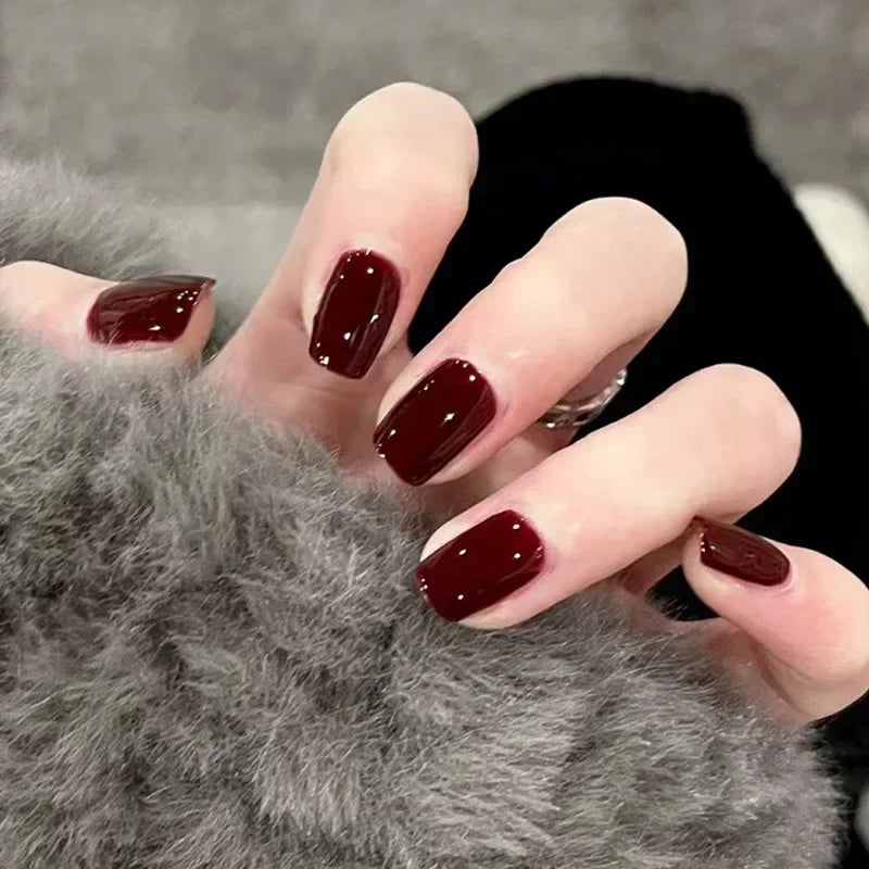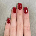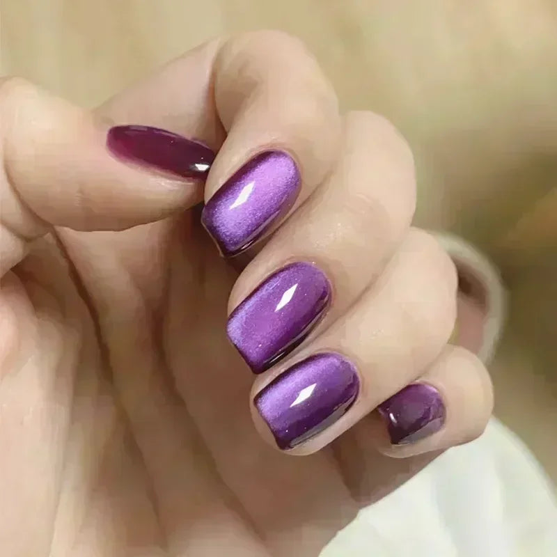 24pcs Crystal Cat Eye False Nails with Glue Short Square Press on Nails Shiny Red Jewel Nail Solid Color Fake Nails Minimalis