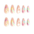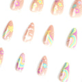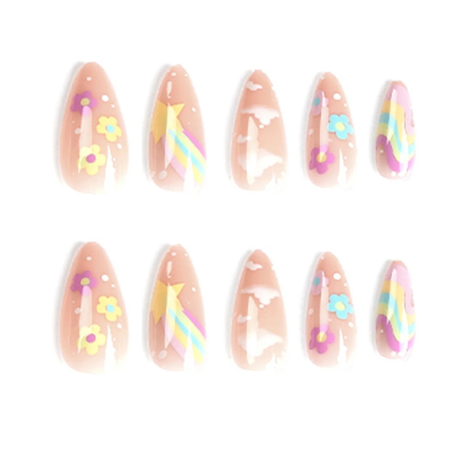 24pcs Cute Colorful False Nail Tips for Girl Rainbow Cloud Star Printed Almond Fake Nails Full Cover Reusable Adhesive Fake Nail