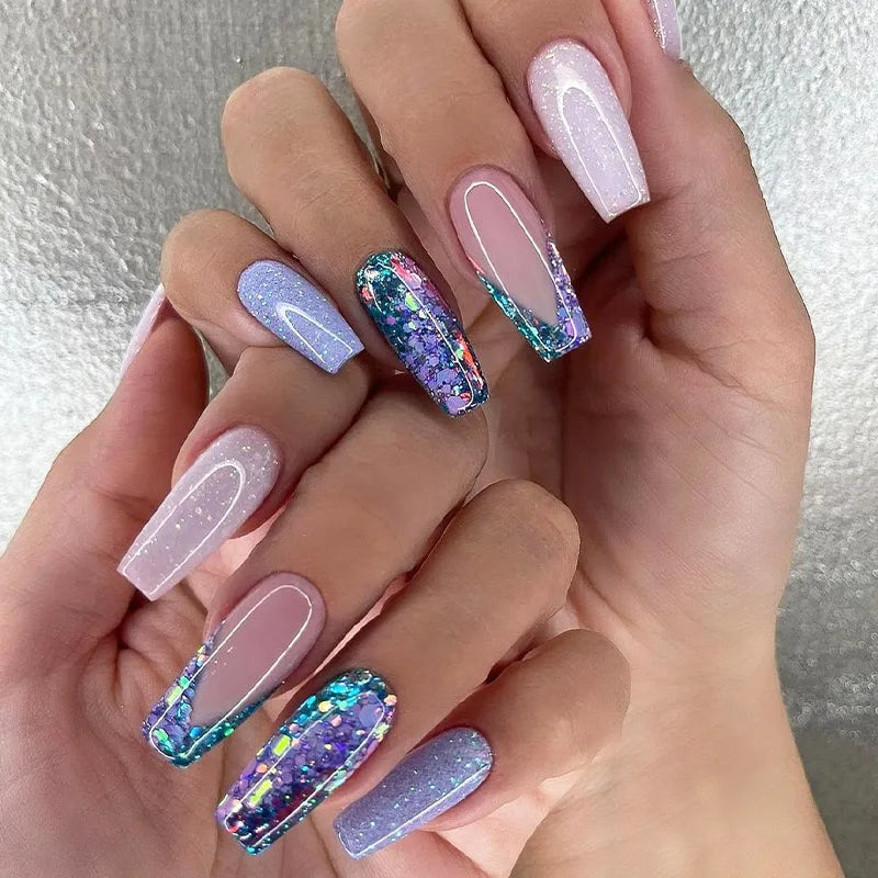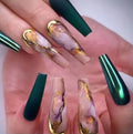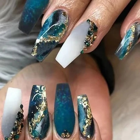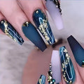 24Pcs Dark Blue Square Head Press on False Nails 3D Ocean Mid-length Fake Nail Wearable Finished Manicure Full Cover Nail Tips