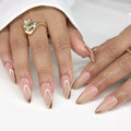 24pcs French Almond Fake Nails Gold Edge Glitter Press on Nails Swirl Metal Nail Art False Nail Full Cover Nail Tips False Nais