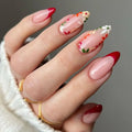 24pcs French False Nails Almond Head Summer Style Glitter Design Fake Nail Patch Full Cover Wearable Women Press on Nail Tips