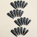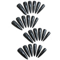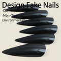 24pcs Glossy Black Fake Nails Set Press On Nail Tips Solid Color Long Stiletto Removable Artificial Nails Decoration Nail Art
