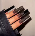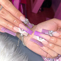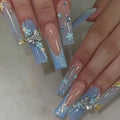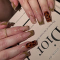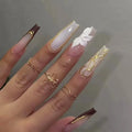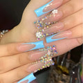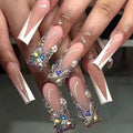 24Pcs Gold French Border False Nails Long Coffin False Nails with Rhinestones Ballerina Full Cover Nail Tips Press on Nails