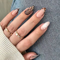 24Pcs Mid-length Blue Almond False Nails with 3D Shell Design Press on Nails Tips Butterfly Flower Pattern Datachable Fake Nail