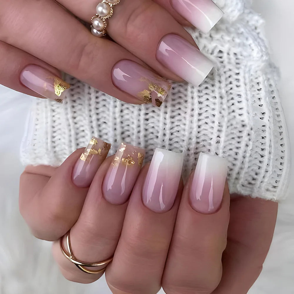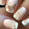 24pcs Press on Nails Flower Design Mid-length Ballet False Nail Fashion Brown Full Cover Manicure Tips Datachable Fake Nails Set
