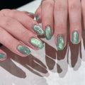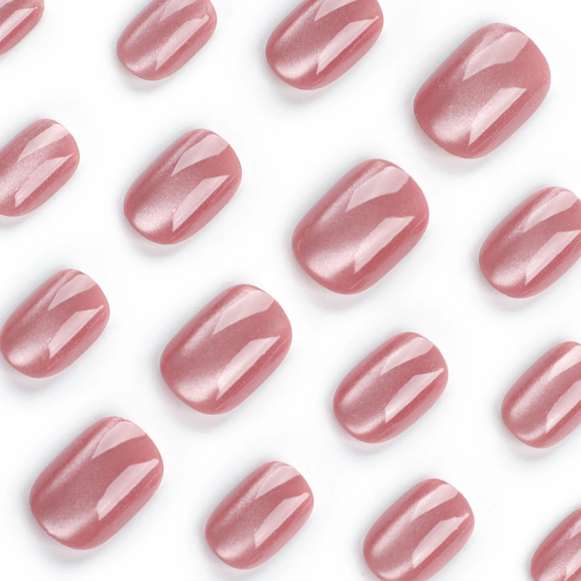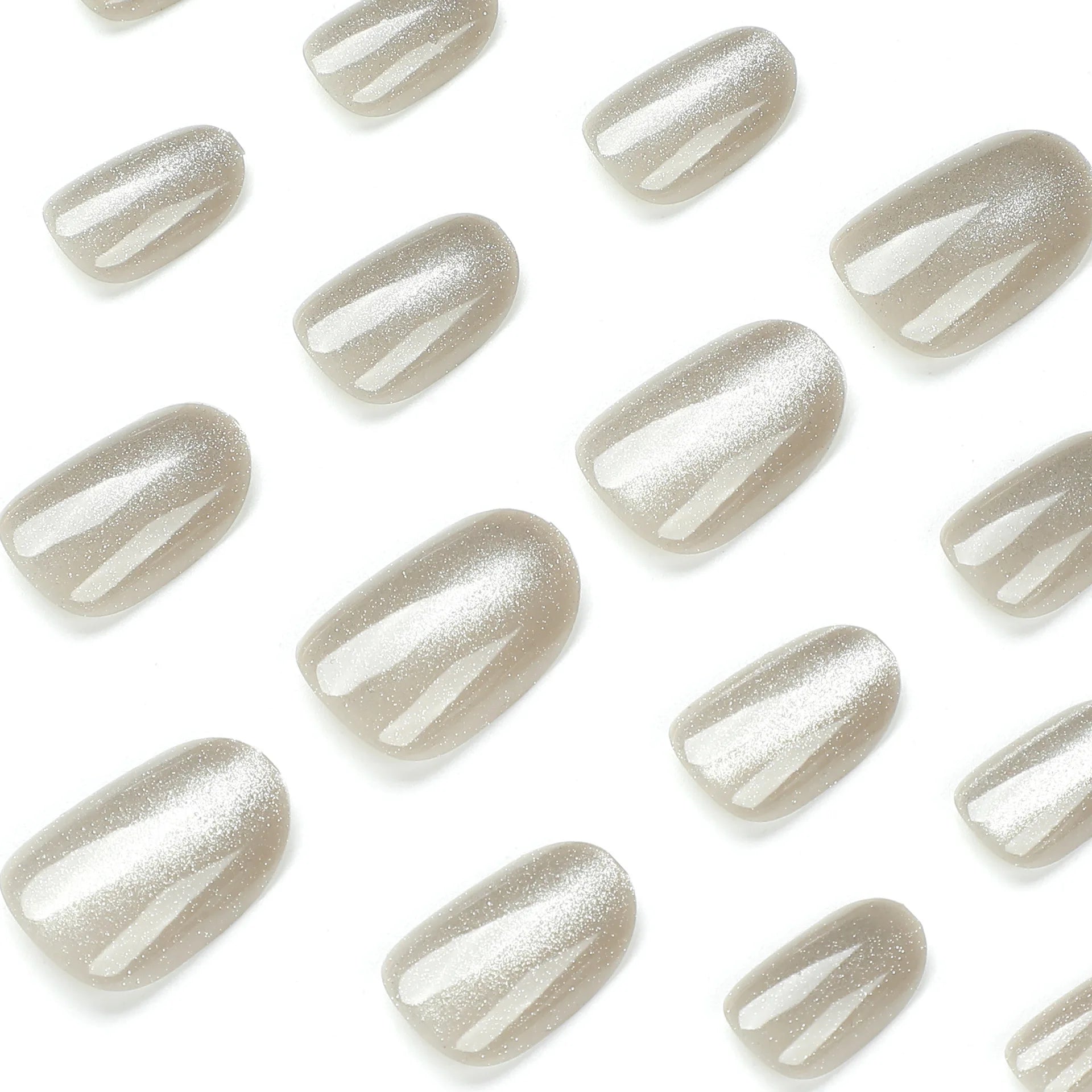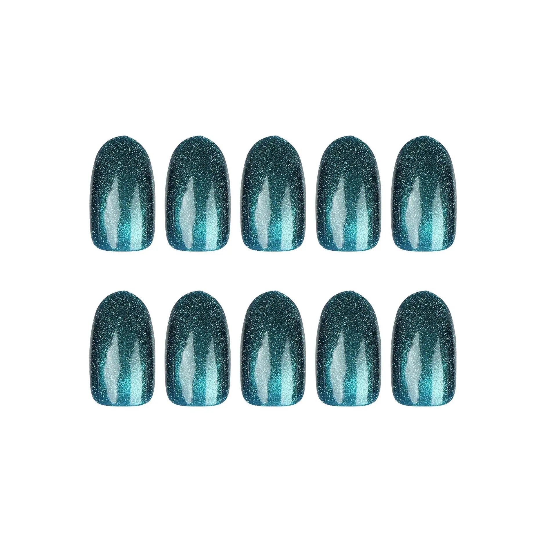 24pcs/set cat eyes fake nails for women girls red brown green blue grey sparkling short tips faux ongles press on false nail