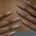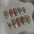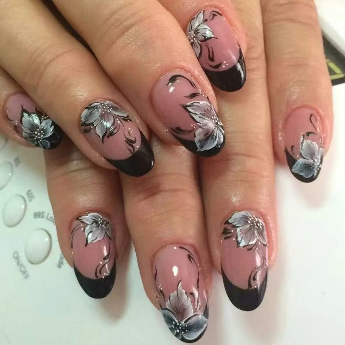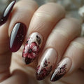 24Pcs Short Round Head Almond Fake Nails with Flowers Grass Pattern Wearable False Nails Tips Summer Full Cover Press on Nails