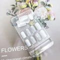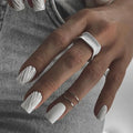 24PCS Short Square False Nails French White Edge Fake Nials Silver Flame Full Cover Press On Nails Detachable Ballerina Nail Tip