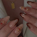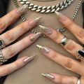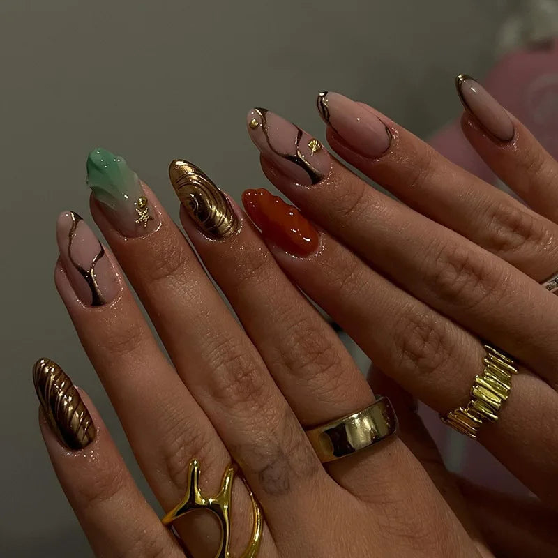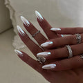 24Pcs Simple French Fake Nails with Almond Head Design Detachable 3D Irregular Star Pattern Press on False Nails Manicure Tools