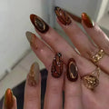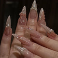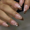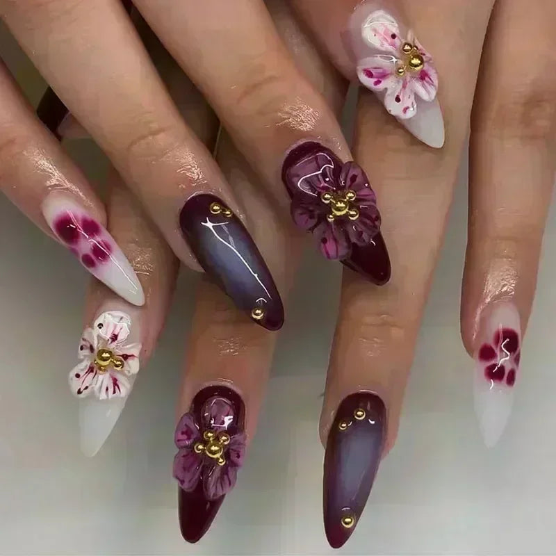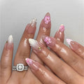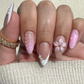 24Pcs Sweet Cool Almond Nail Set Press on Acrylic Nails 3D Floral Butterfly Fake Nail Full Cover French Tip Artificial Nails Art