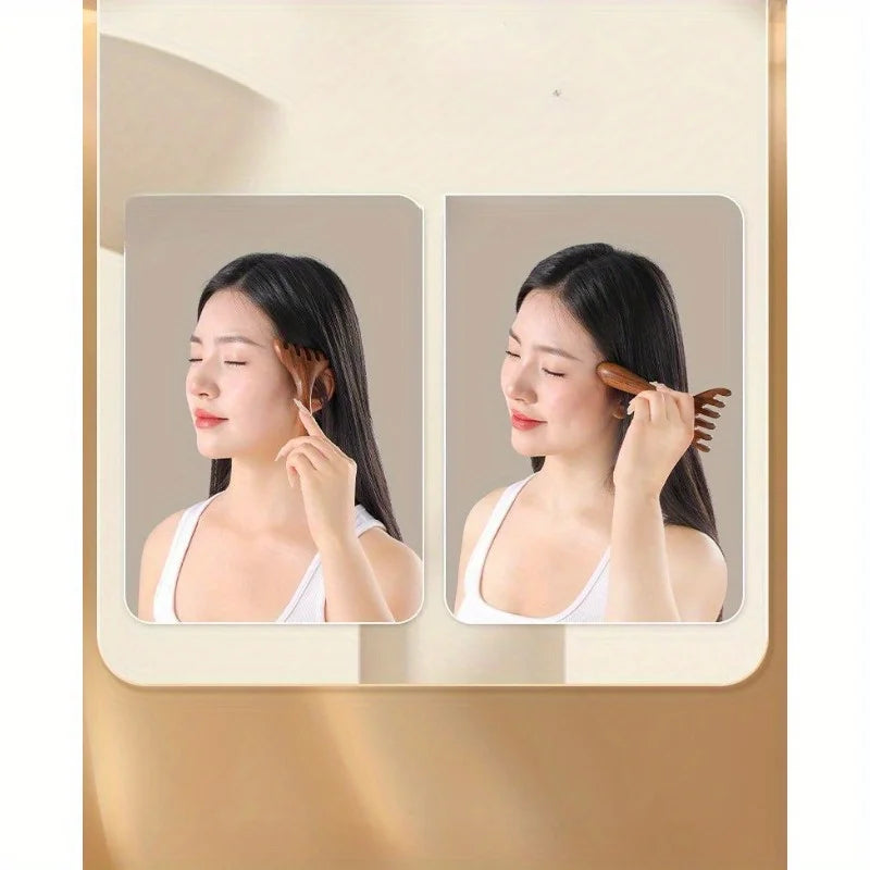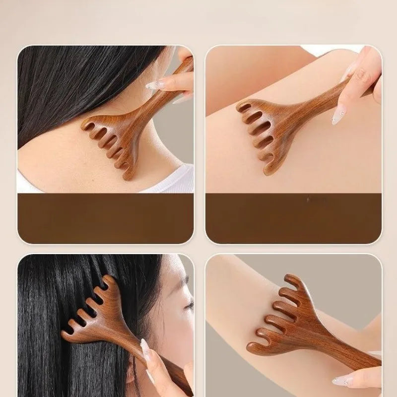 2pcs Deer Horn Massage Combs - Scalp & Neck Massager with Ergonomic Handle, Relaxation, Natural Wood Look
