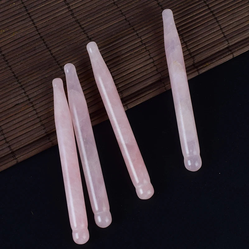 2Pcs Massage Eye Sticker Natural Rose Quartz Face Body Crystal Mineral Stone Massager Health Skin Care Gua Sha Tool Lifting Wand