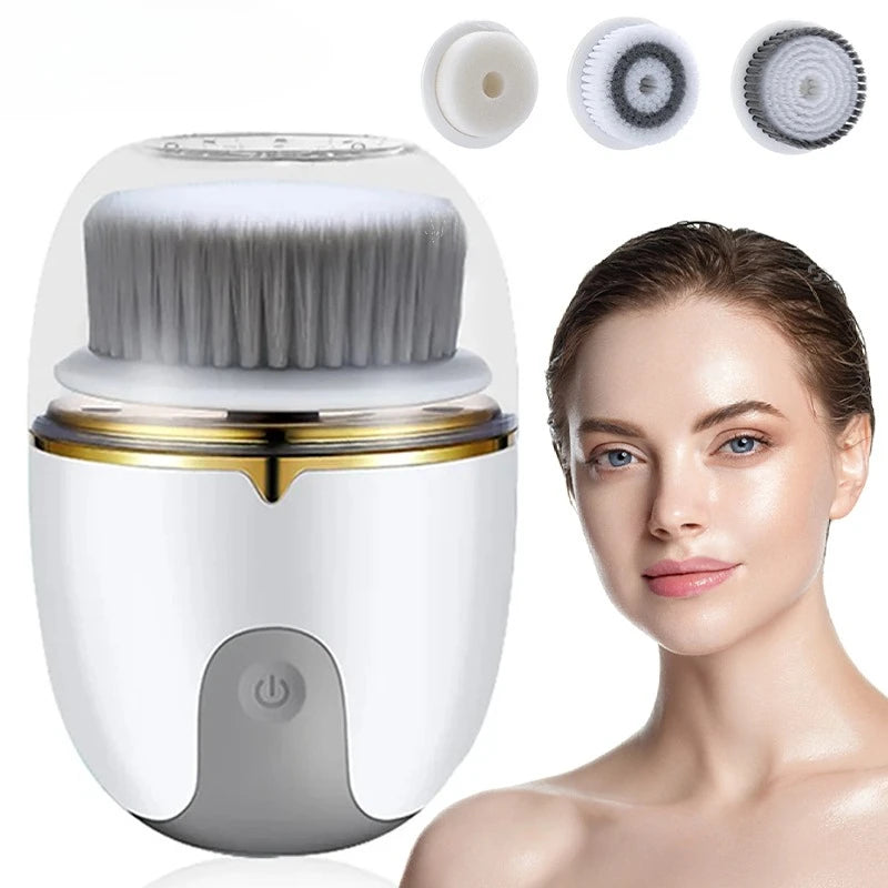 3 in 1 Waterproof Facial Cleansing Brush Device Silicone Deep Cleansing Face Scrubber Exfoliator Cleaner Vibration Massager