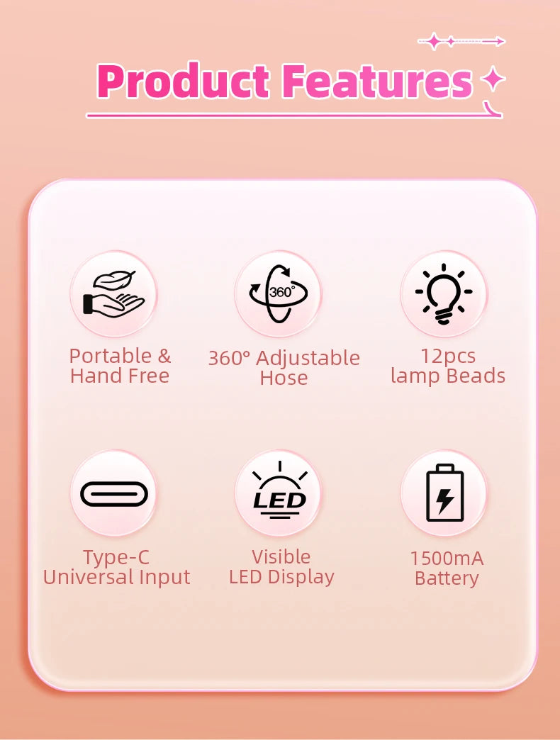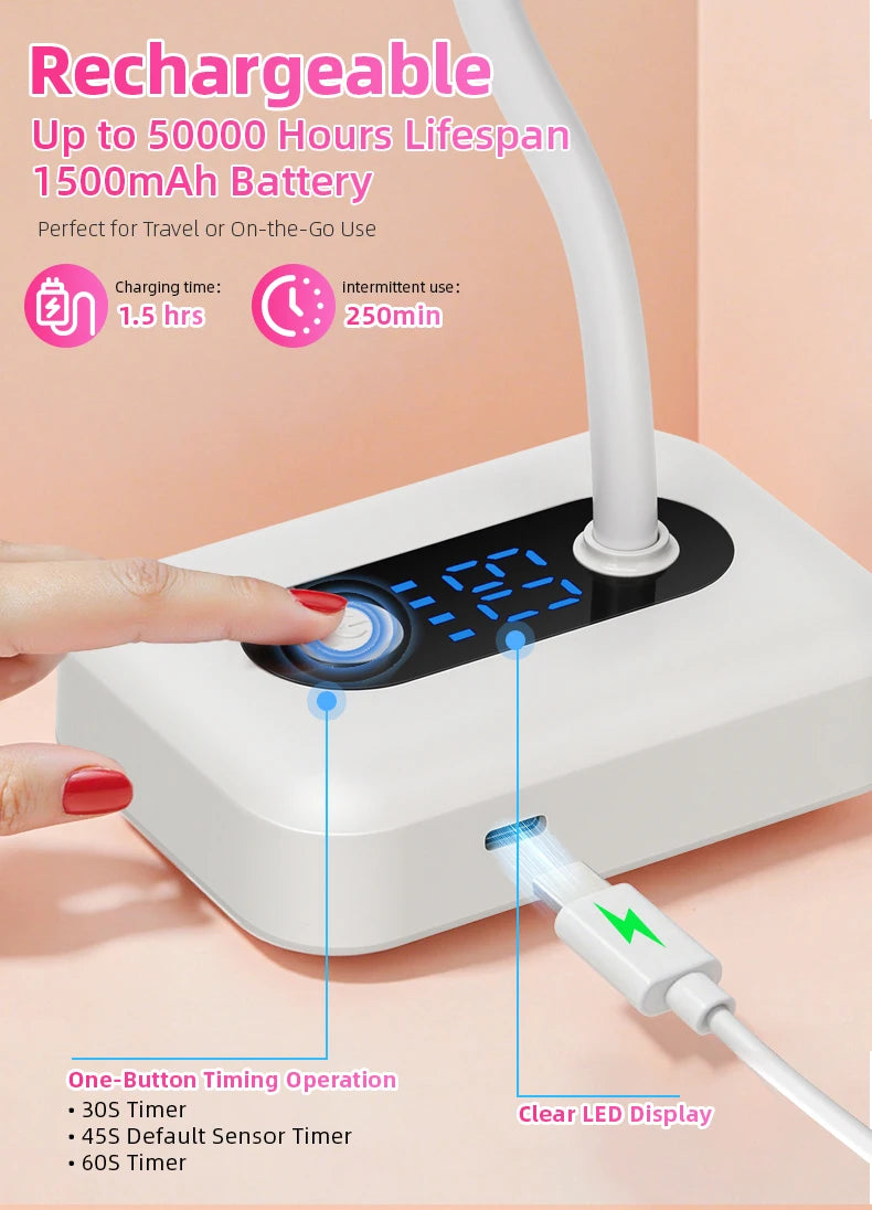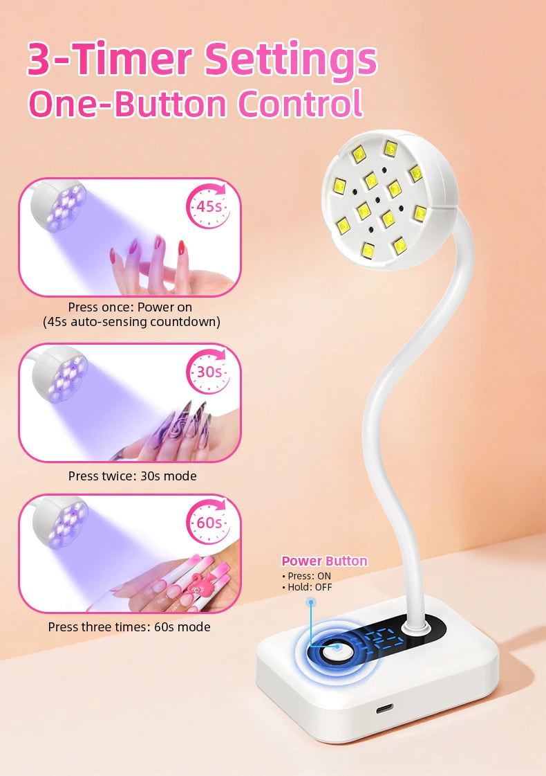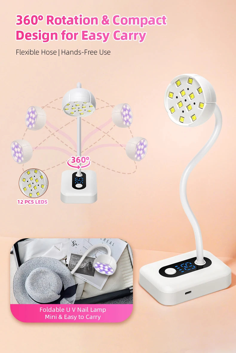 36W Rechargeable UV LED Nail Lamp Cordless 12LEDS Nail Dryer 360° Bendable Fast Drying Nail Manicure Polish Glue Gel Curing Lamp